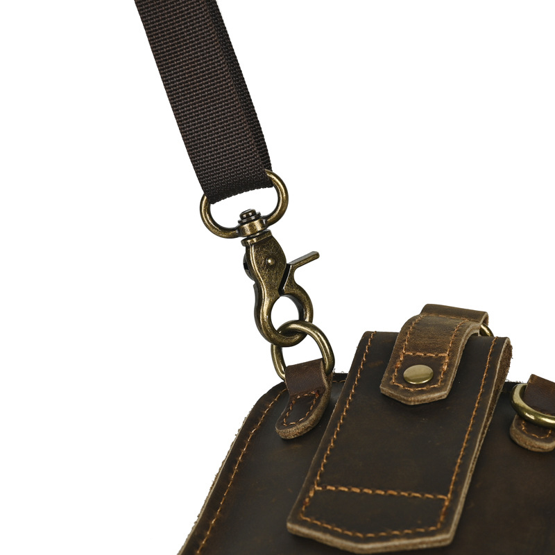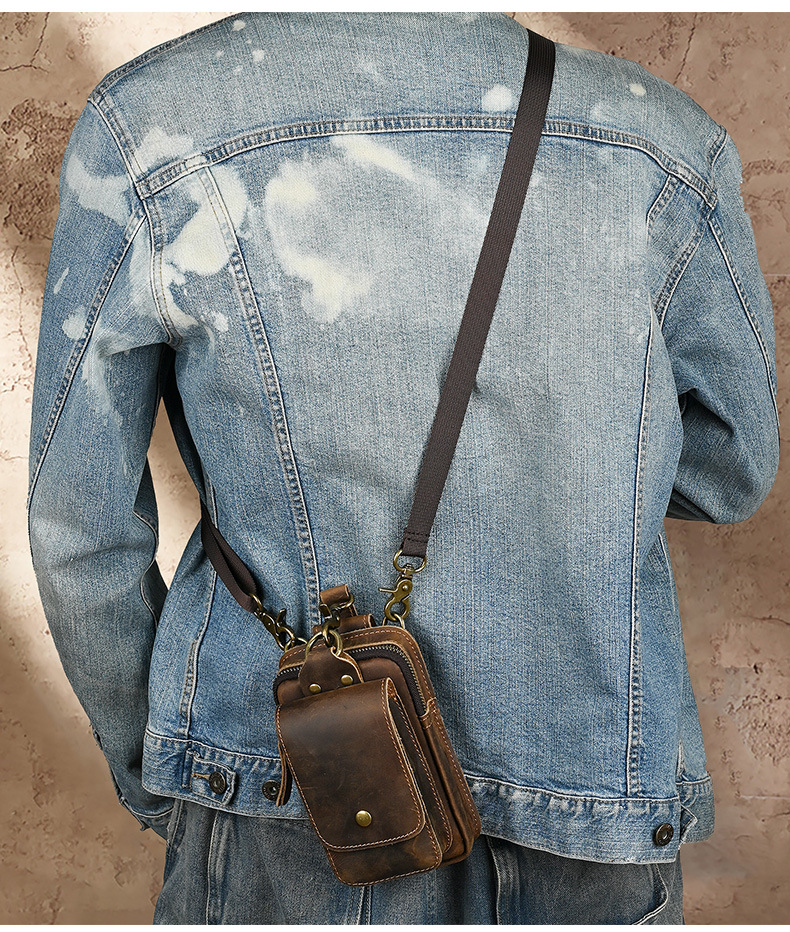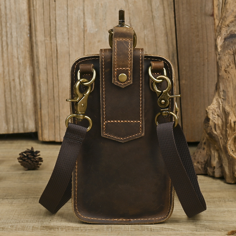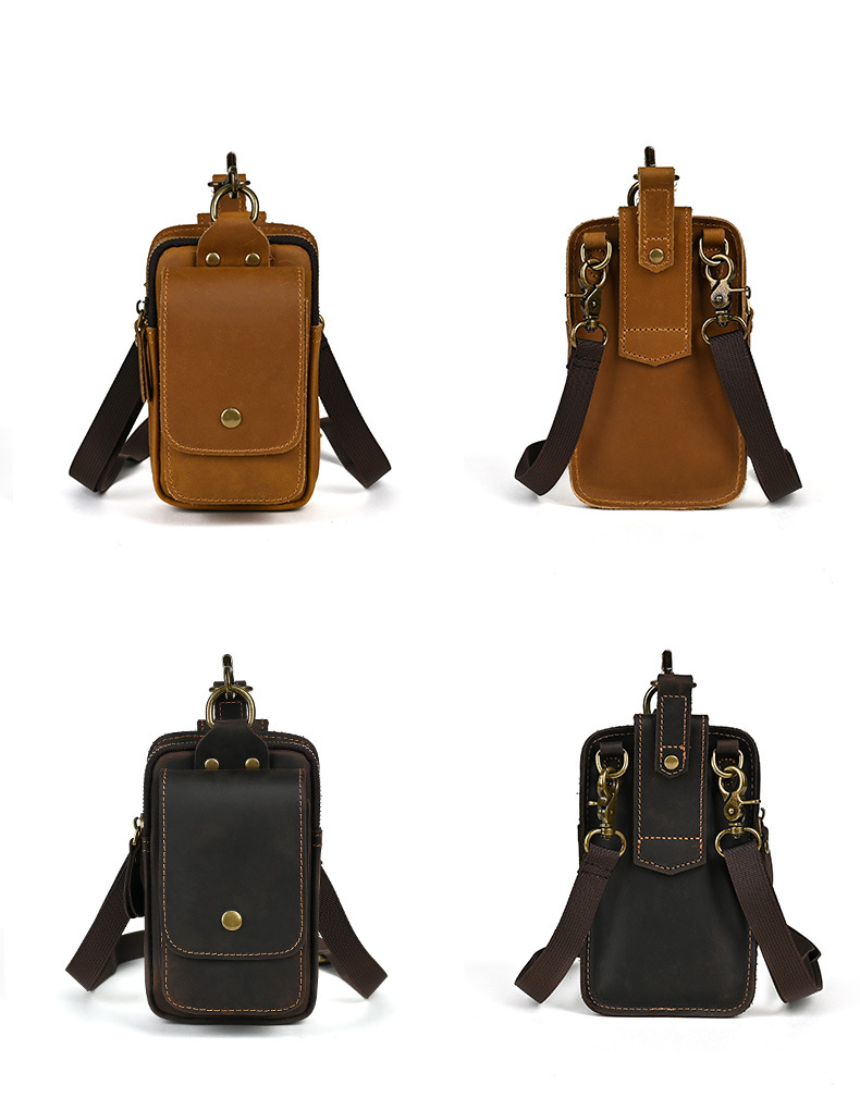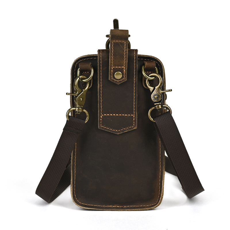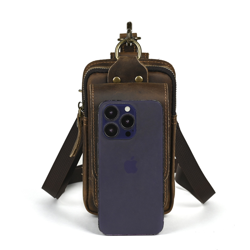 국경 간 정품 가죽 남성 허리 가방 상단 레이어 Cowhide 야외 배낭 미친 말 가죽 벨트 휴대 전화 가방
