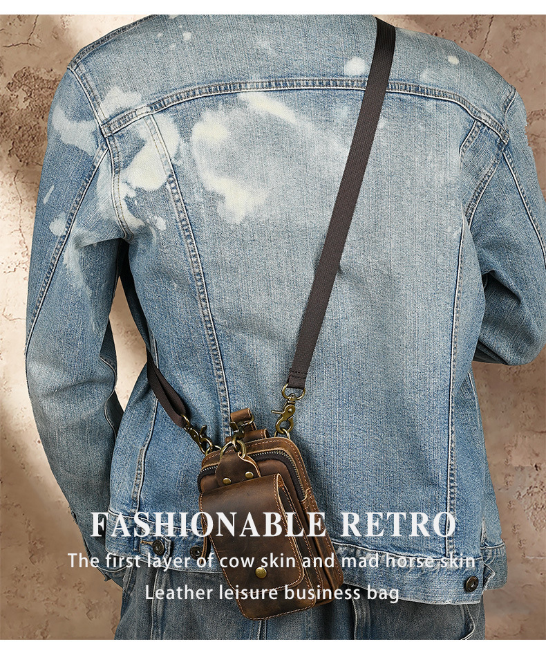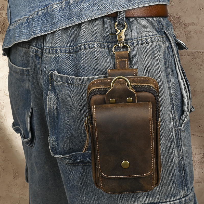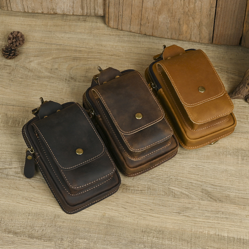 국경 간 정품 가죽 남성 허리 가방 상단 레이어 Cowhide 야외 배낭 미친 말 가죽 벨트 휴대 전화 가방스토어 가기