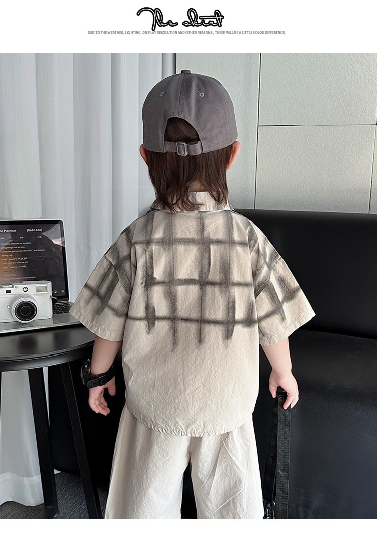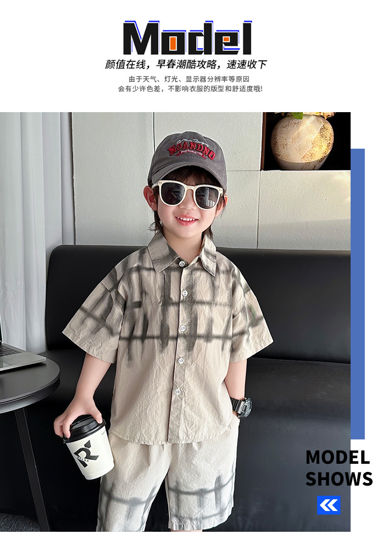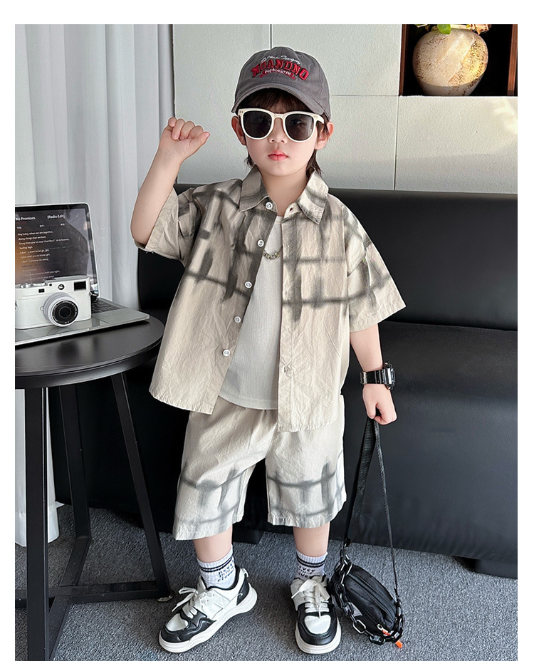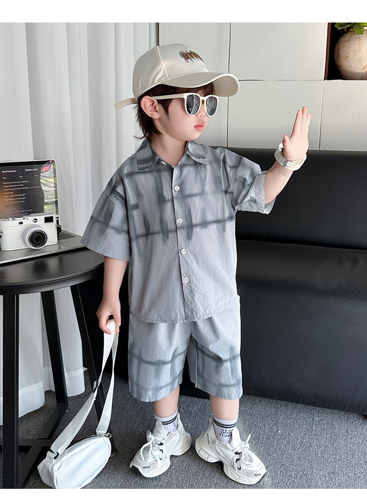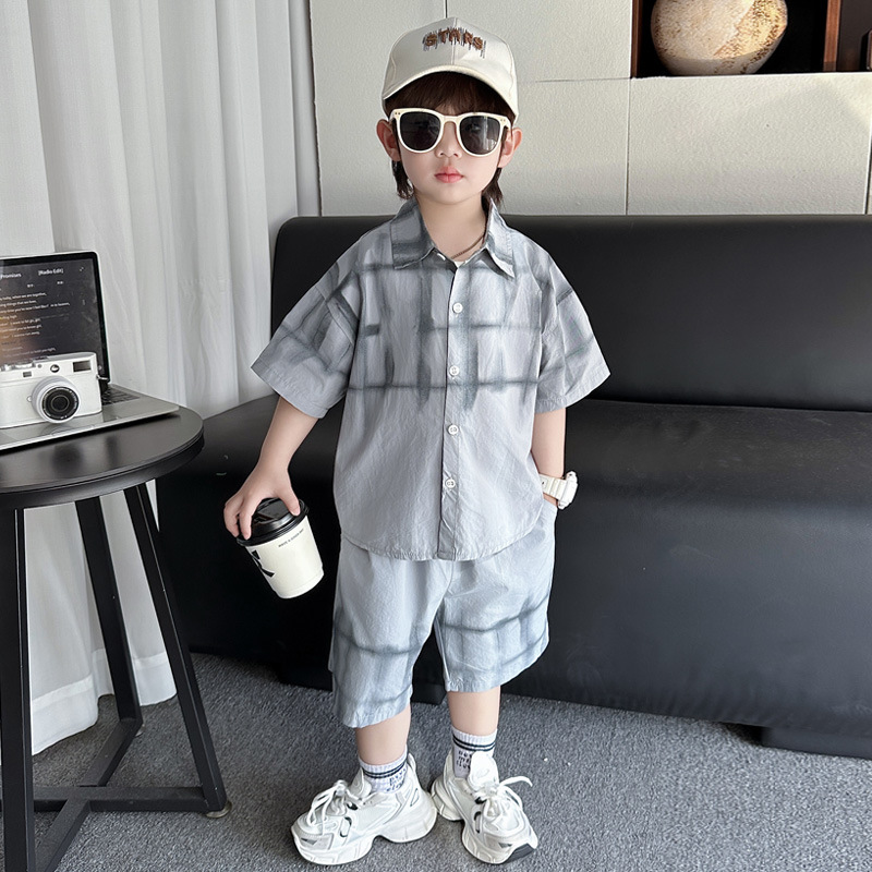 아동 의류 소년 여름 정장 2025 새로운 유행 얇은 여름 소년 스타일 반팔 셔츠 투피스 세트 유행스토어 가기