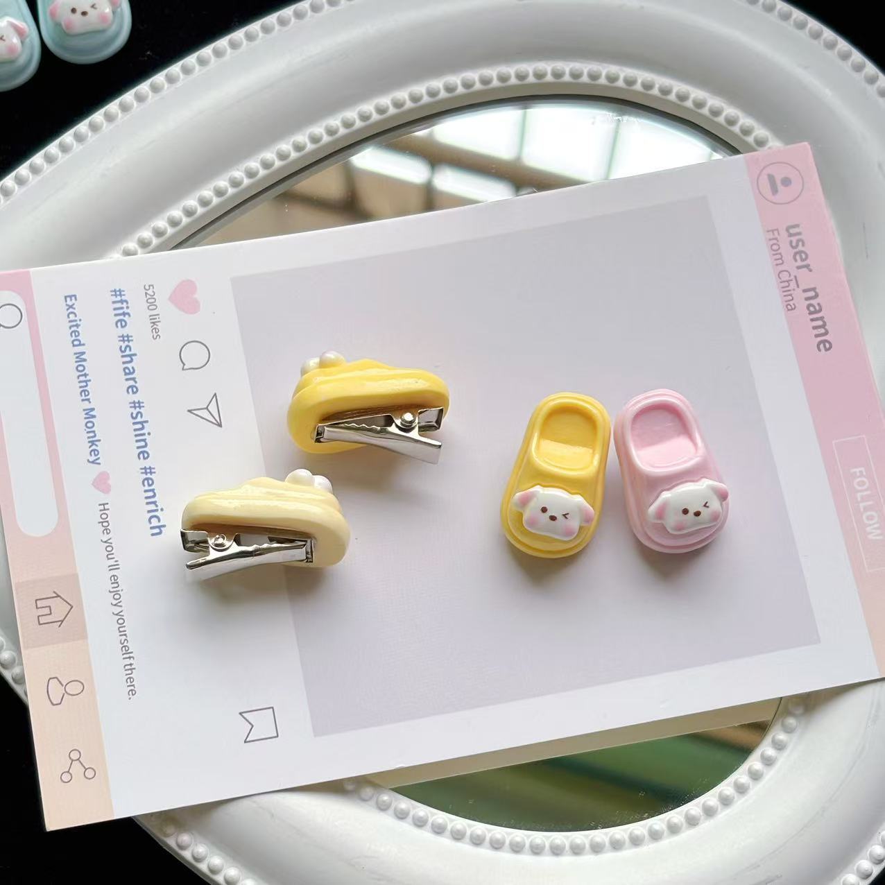 멍청한 작은 슬리퍼 헤어 클립 귀여운 만화 재미있는 머리핀 소녀 심장 학생 여자 친구 리우 해변 클립 헤어 액세서리스토어 가기