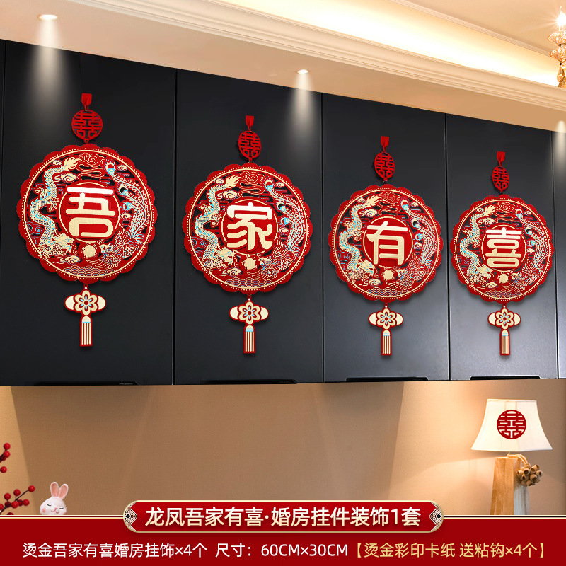 웨딩 레이아웃, 웨딩룸 장식 세트, 웨딩룸, 남성용 새집, 행복한 말이 달린 걸이 장식, 거실, 여성용, 우리 집에 행복이 있습니다