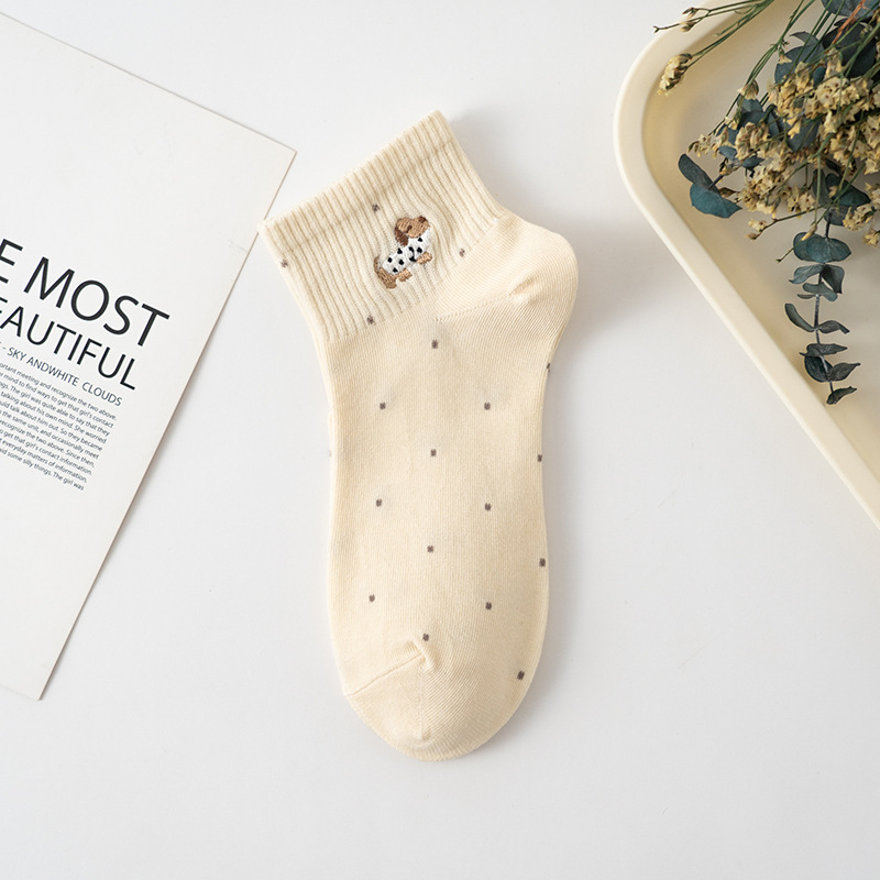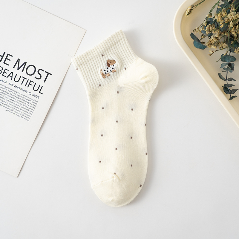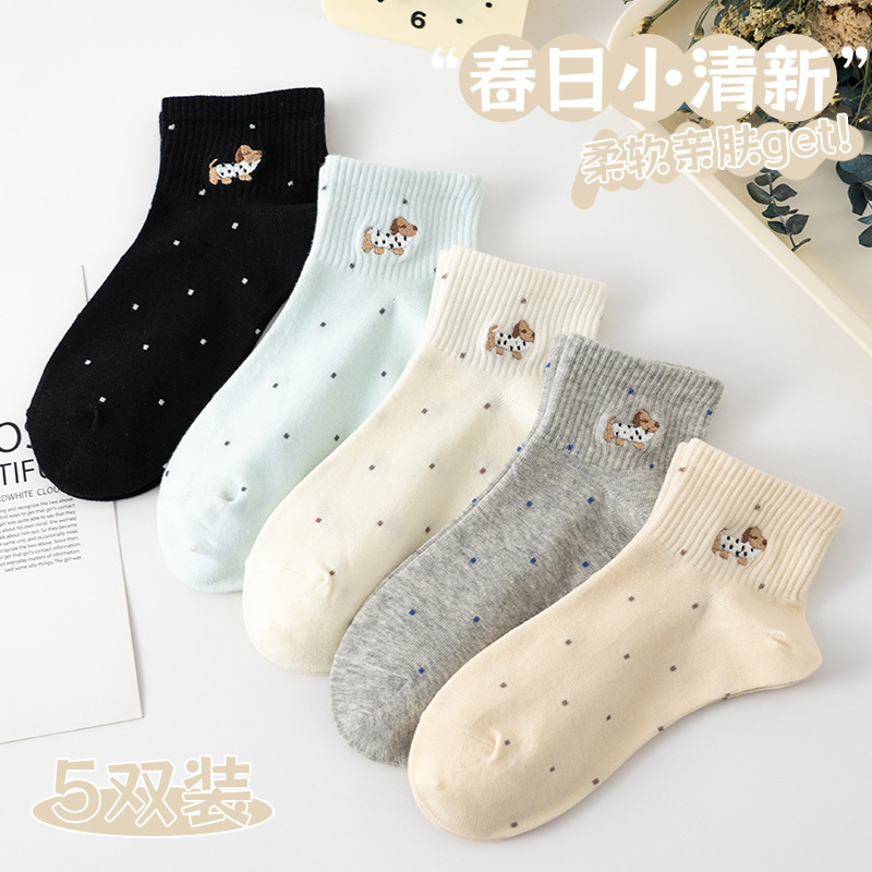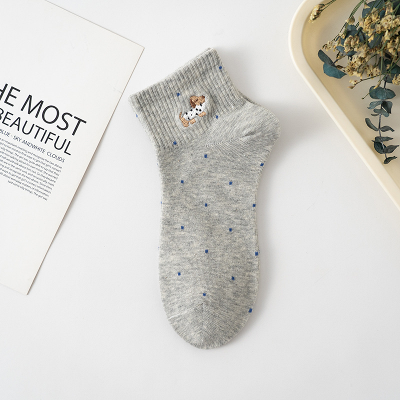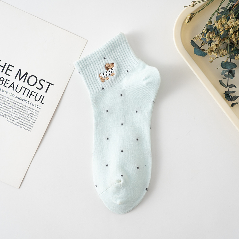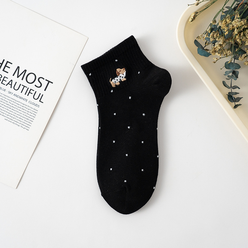 봄 여름 자수 강아지 귀여운 양말 한국식 자수 면 양말 통기성 땀 흡수 짧은 양말 여성용 다용도 양말