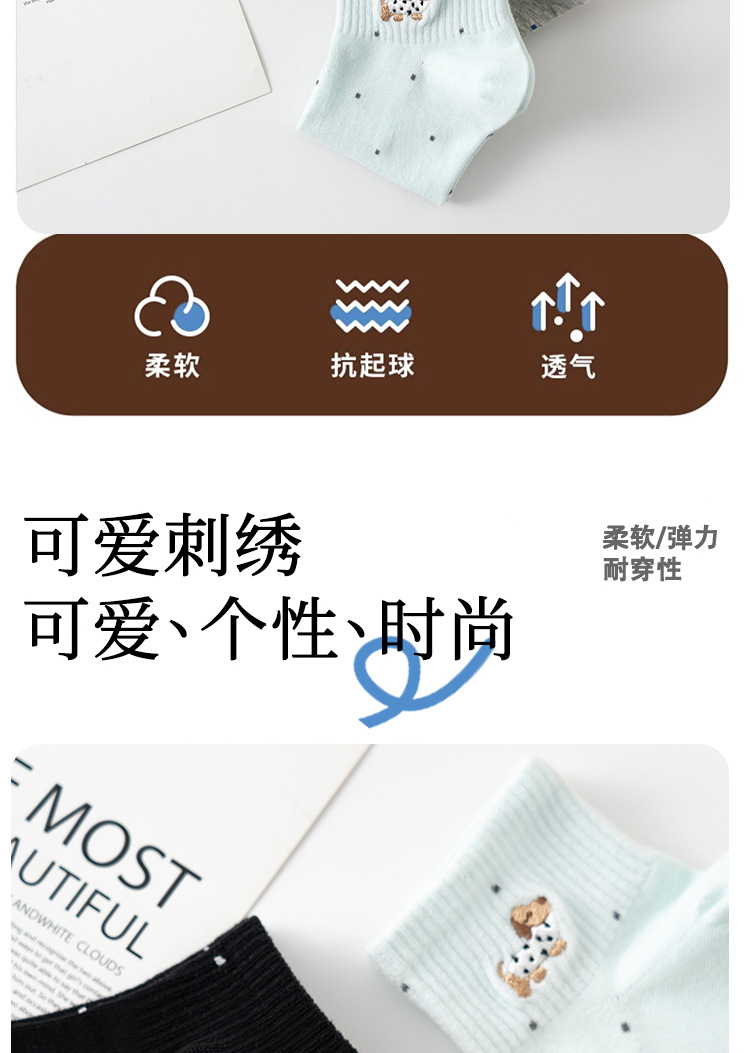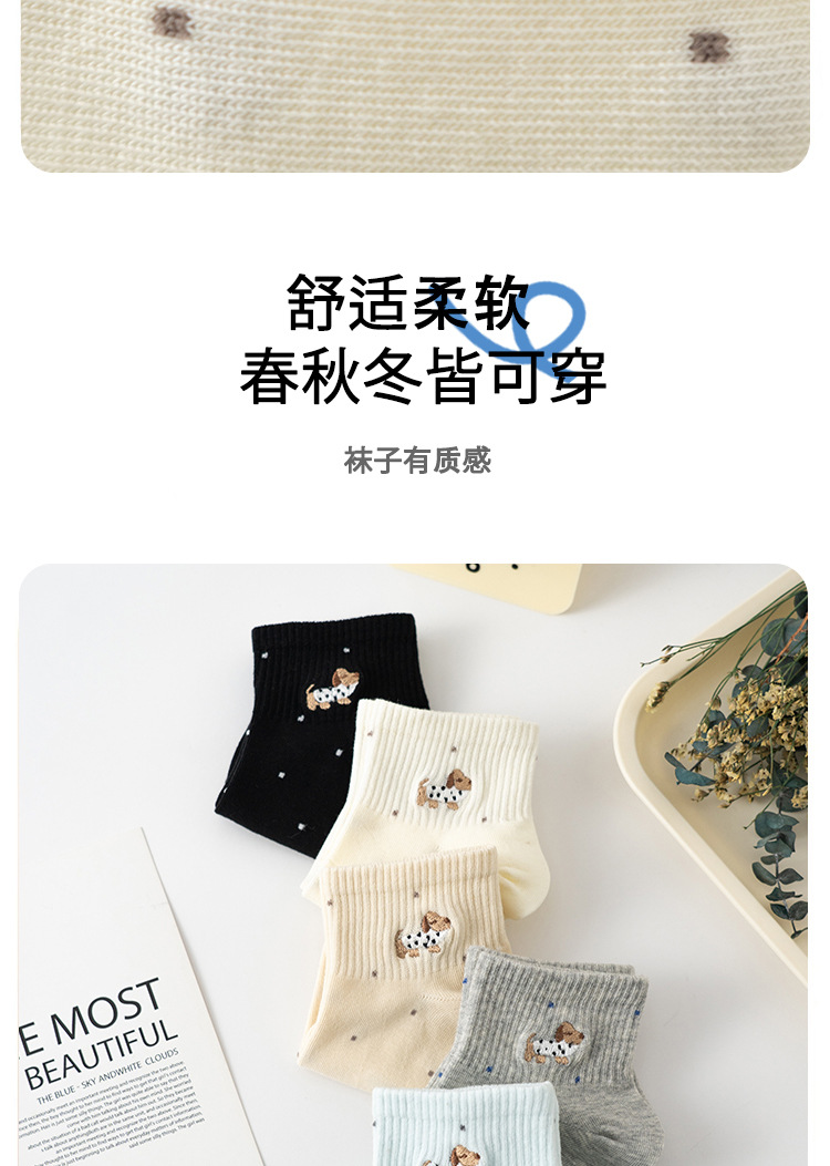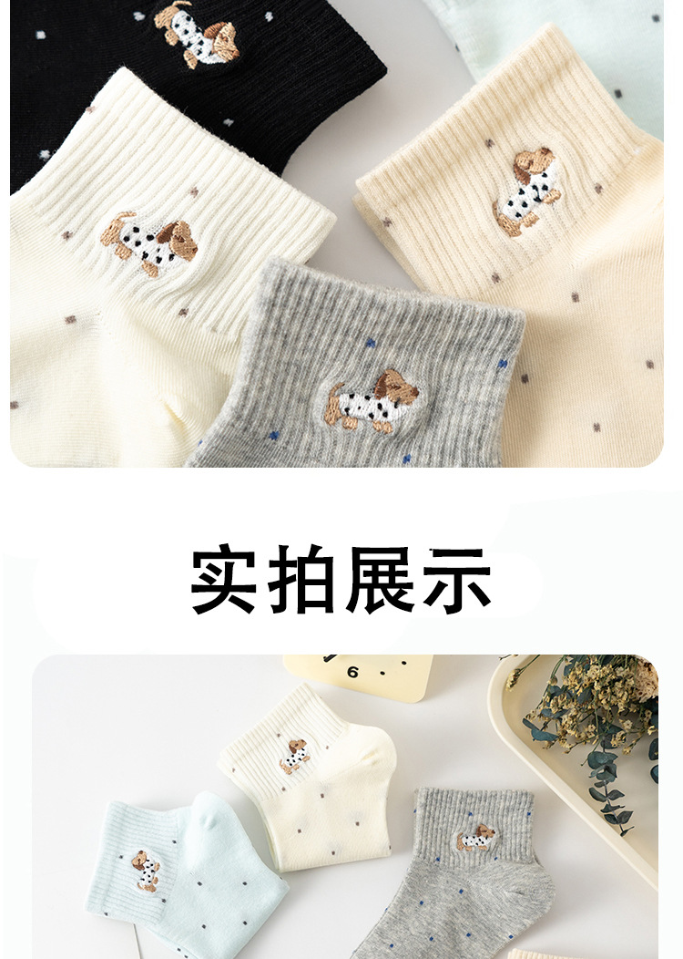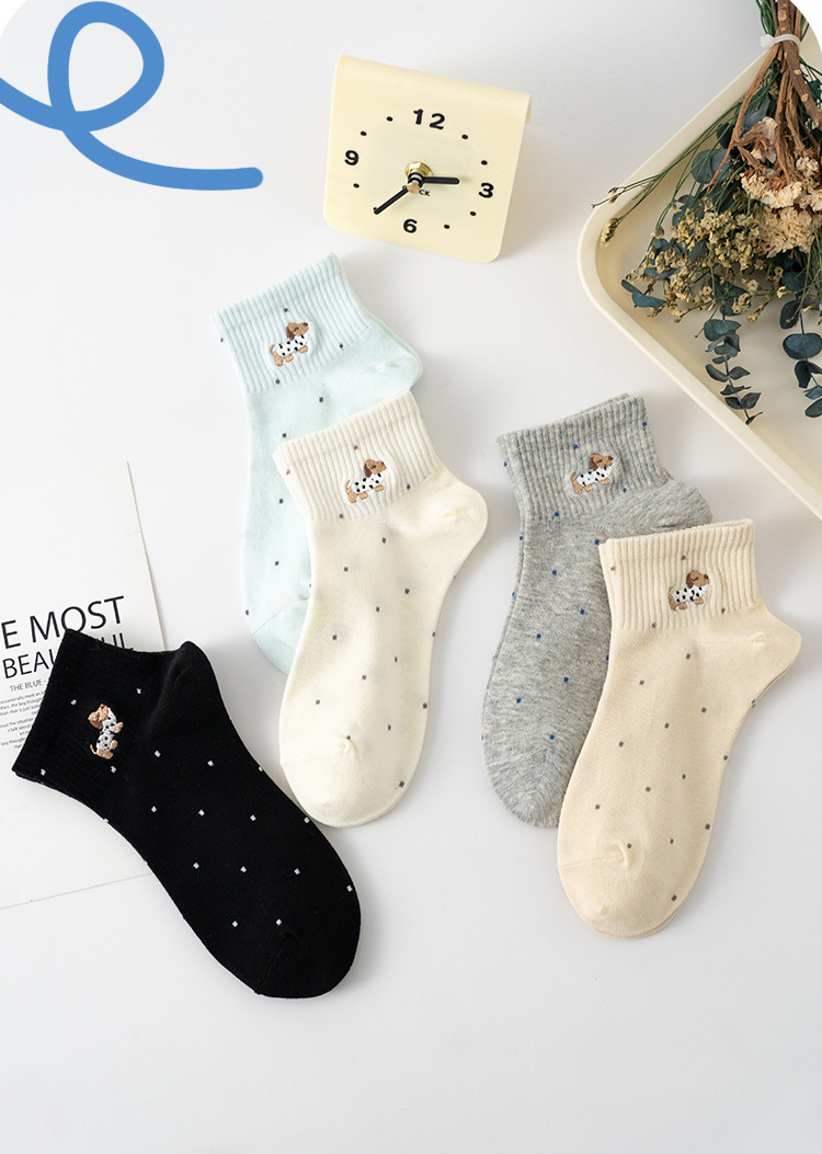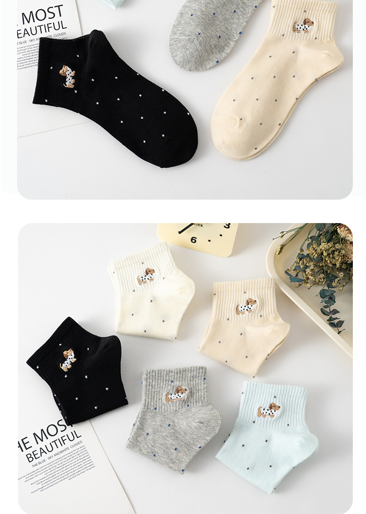 봄 여름 자수 강아지 귀여운 양말 한국식 자수 면 양말 통기성 땀 흡수 짧은 양말 여성용 다용도 양말