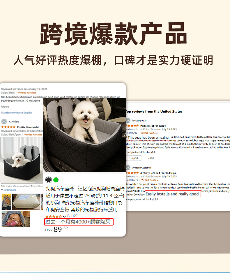 국경을 넘나드는 인기 벨벳 자동차 내부 개 강화 카시트, 탈부착 및 세척 가능한 애완동물 편안한 카시트