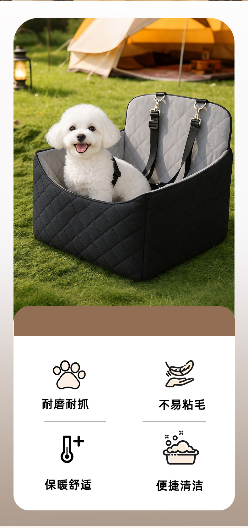 국경을 넘나드는 인기 벨벳 자동차 내부 개 강화 카시트, 탈부착 및 세척 가능한 애완동물 편안한 카시트스토어 가기