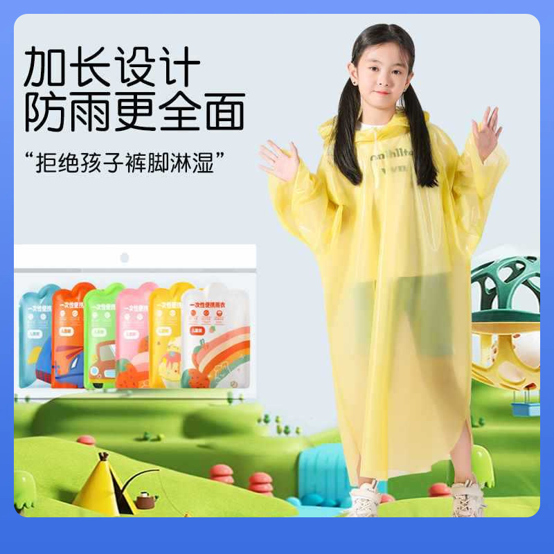 ✅ 어린이 카드 비옷 5-12 세 만화 긴 전신 방수 일회용 투명 학교 가방 비옷스토어 가기
