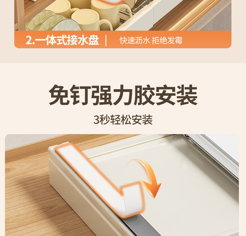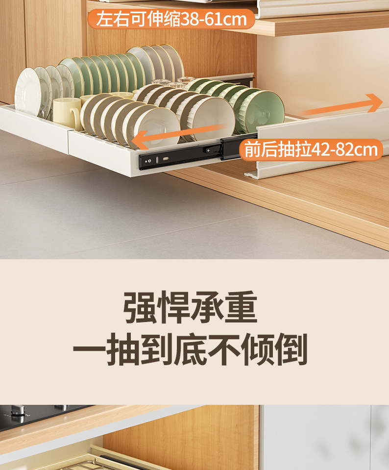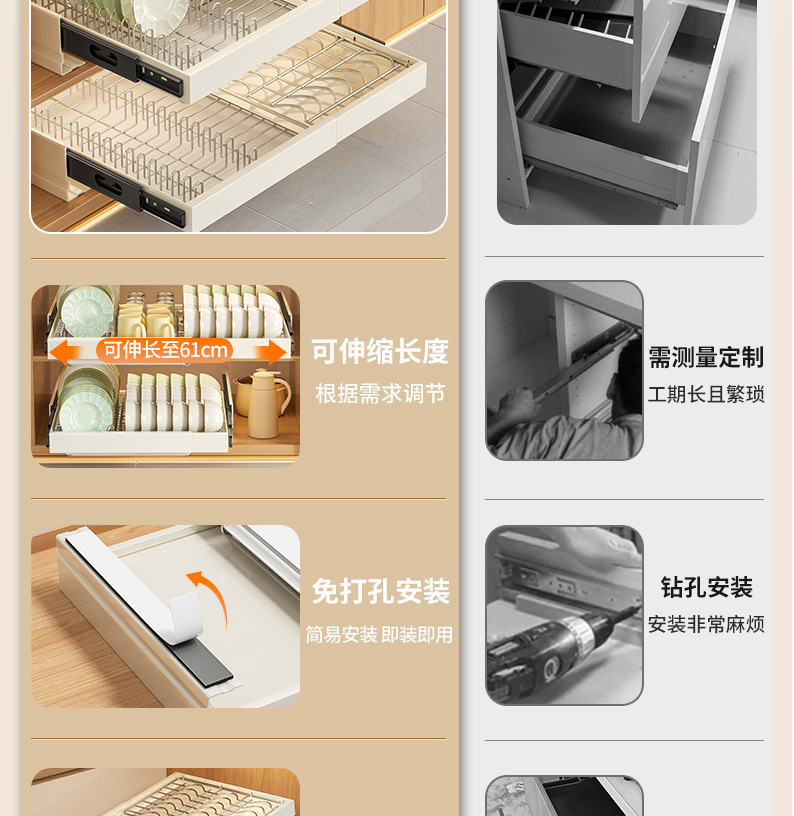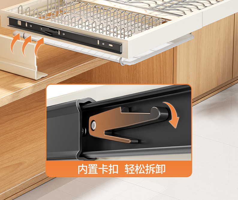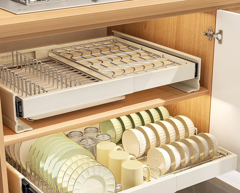 스테인레스 스틸 풀아웃 식기 보관함 주방 서랍형 텔레스코픽 바구니 캐비닛 내부 식기 배수 보관함