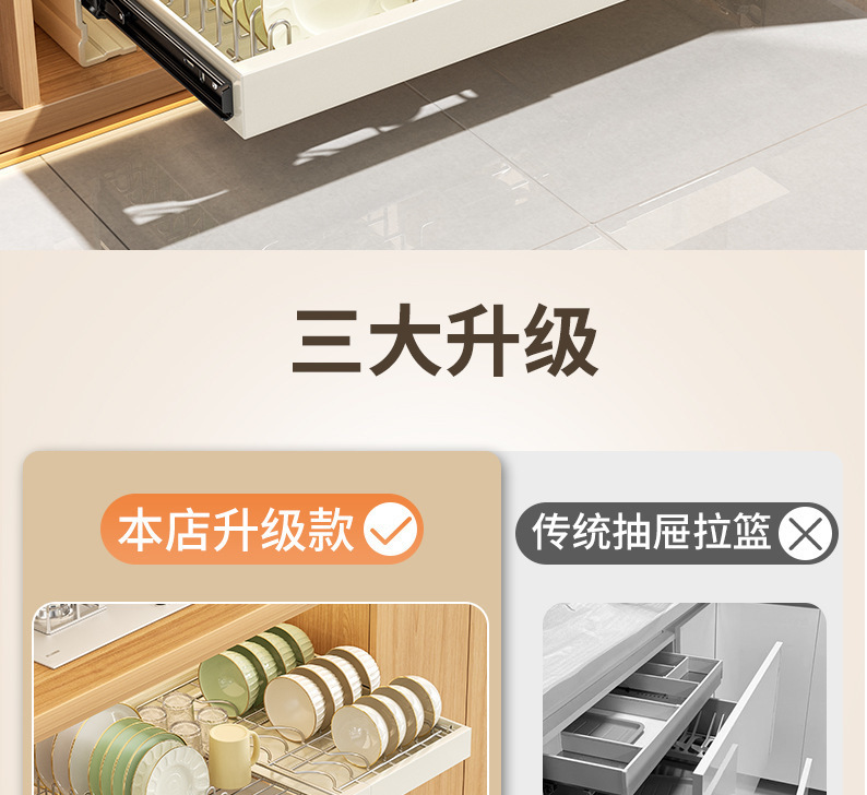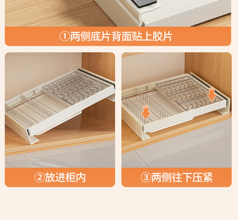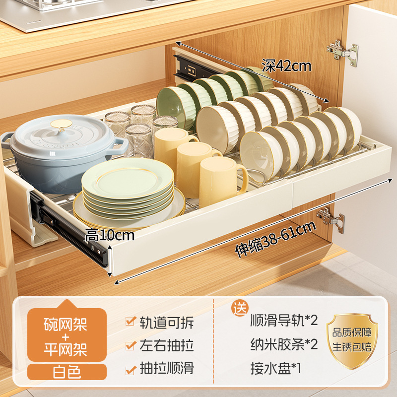 스테인레스 스틸 풀아웃 식기 보관함 주방 서랍형 텔레스코픽 바구니 캐비닛 내부 식기 배수 보관함스토어 가기