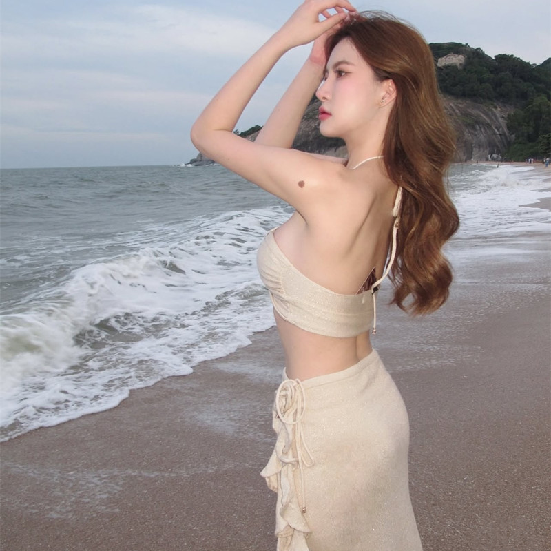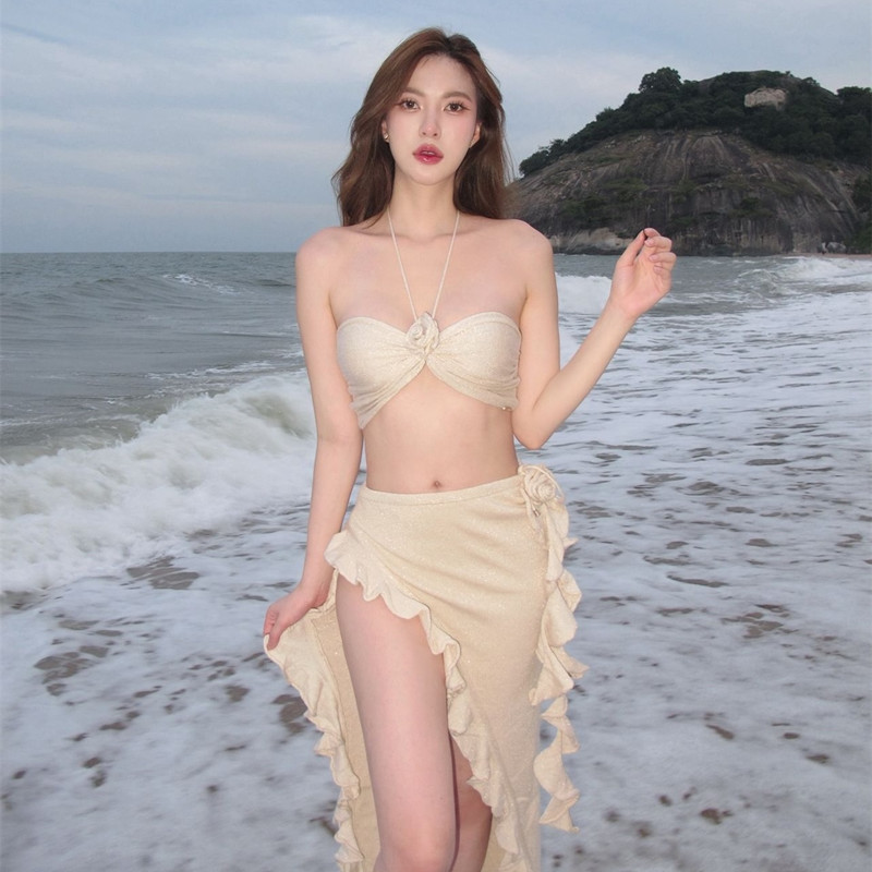 2025 일본과 한국의 새로운 섹시한 장미 서스펜더 솔리드 컬러 3피스 수영복 비키니 비키니 국경 간 대외 무역스토어 가기