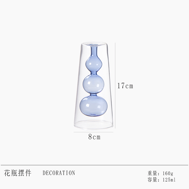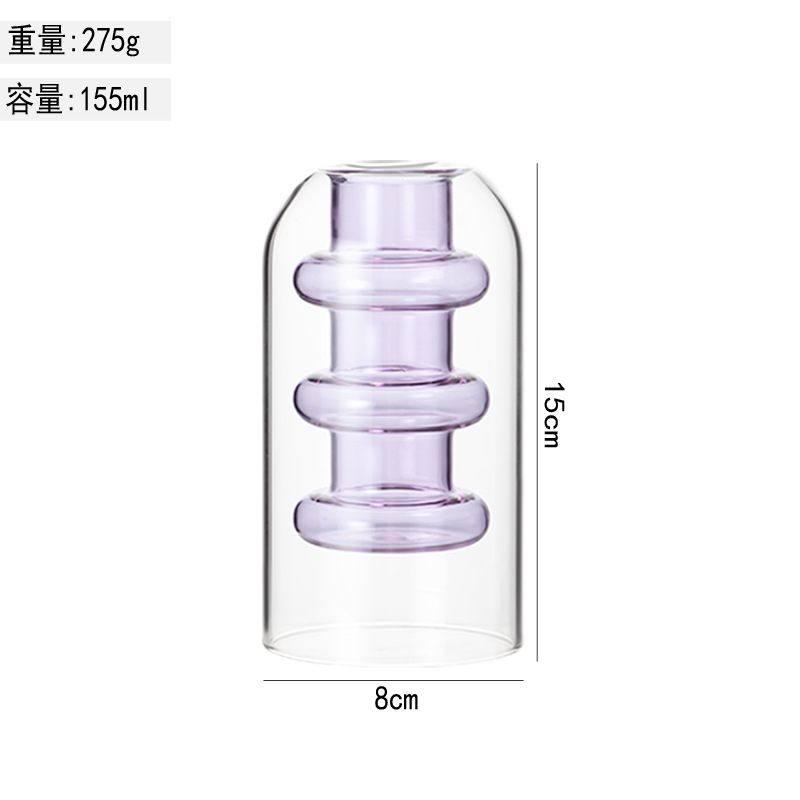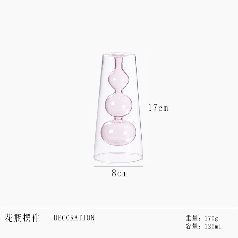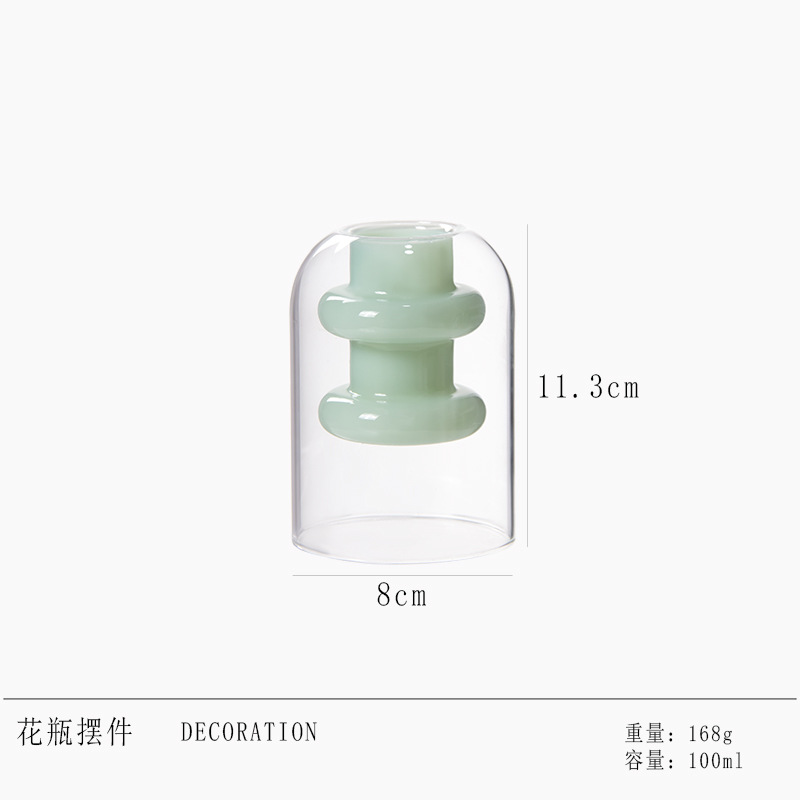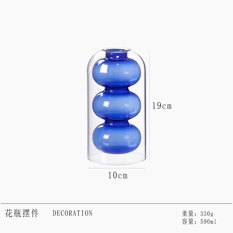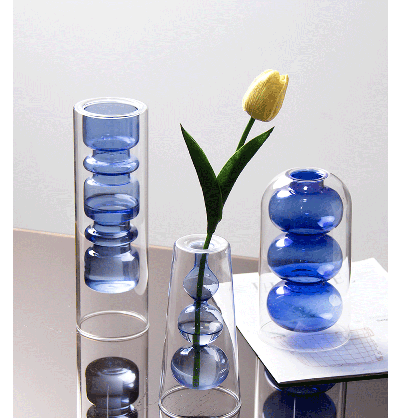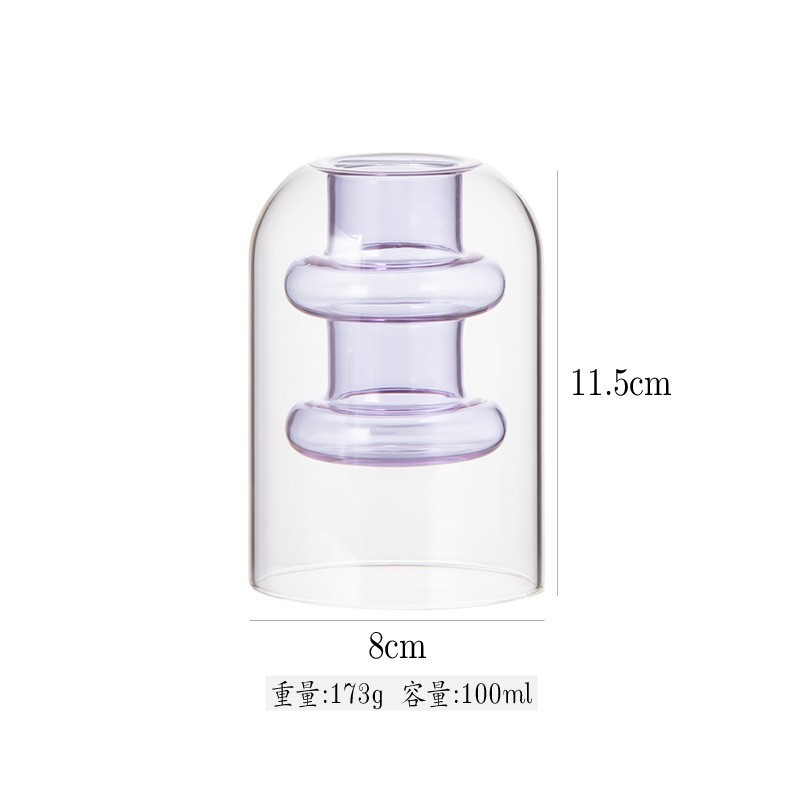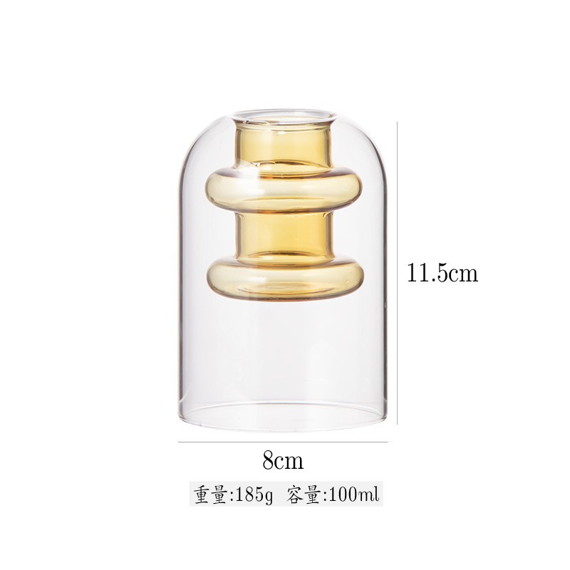 북유럽 현대 미니멀리스트 컬러 유리 크리 에이 티브 더블 레이어 투명 꽃병 레스토랑 탁상 장식품 맞춤형 수경 꽃 장치스토어 가기
