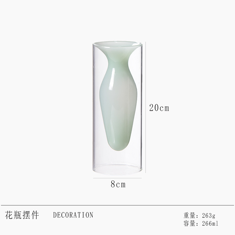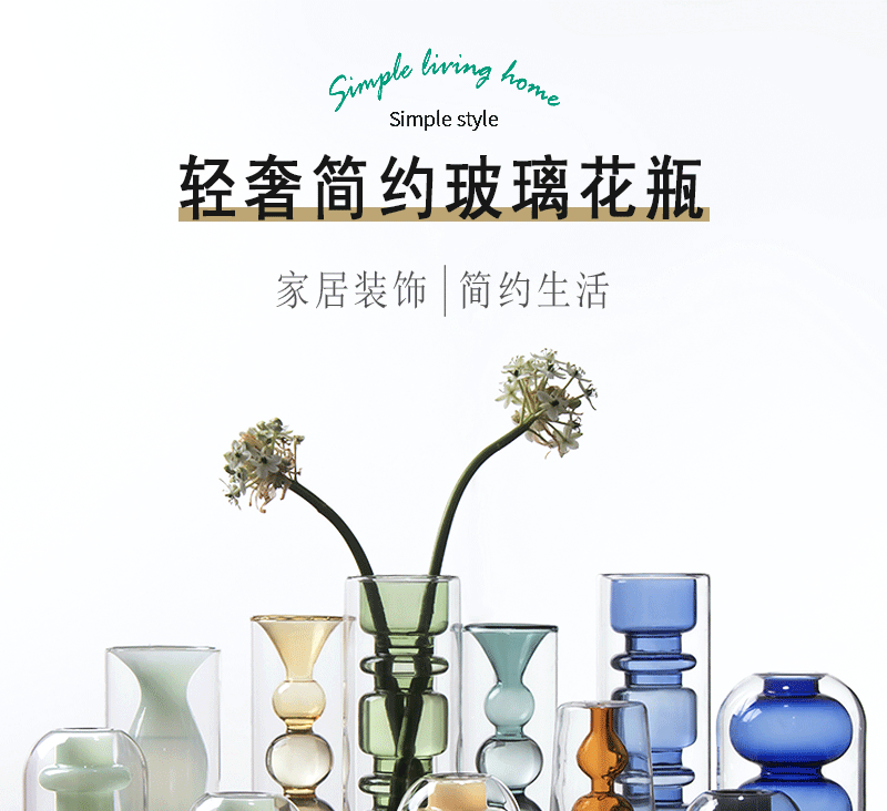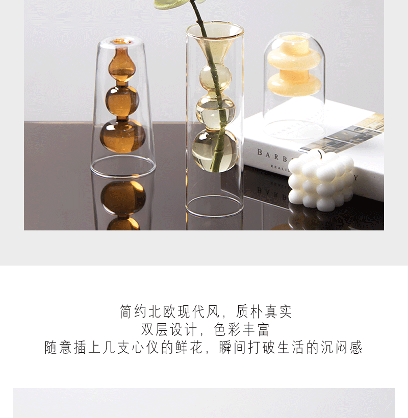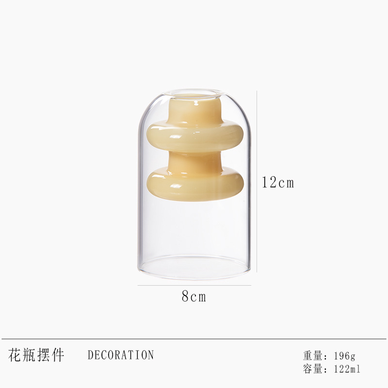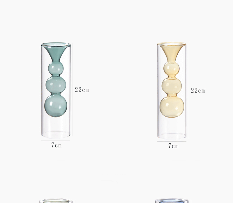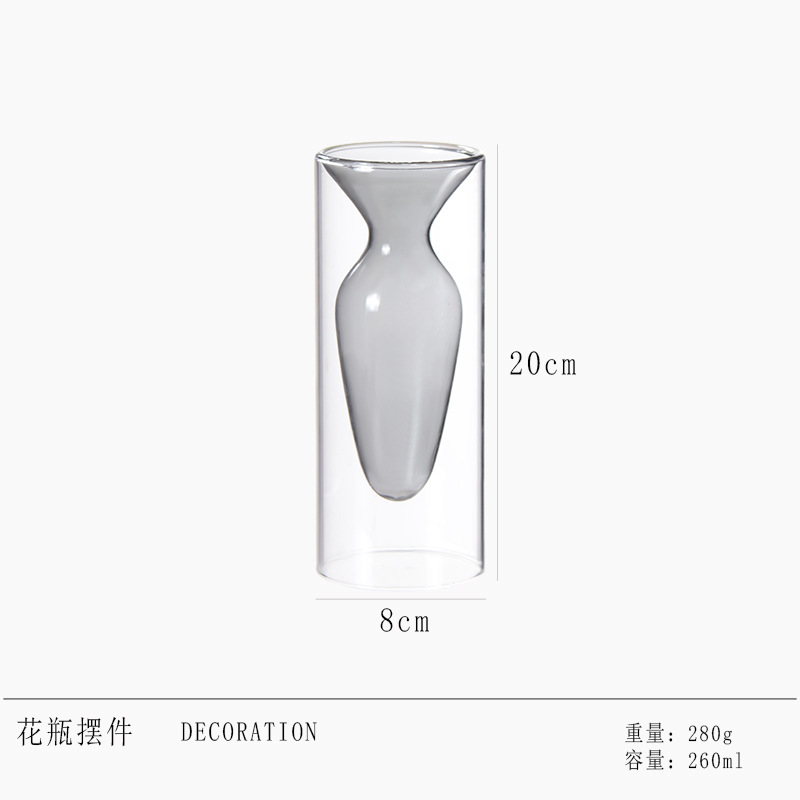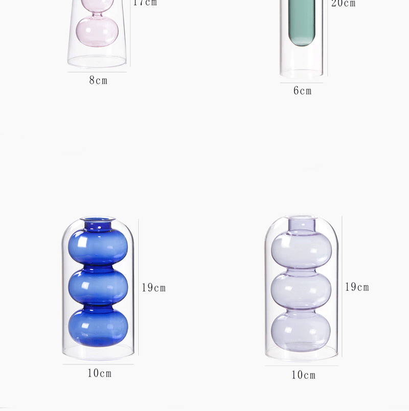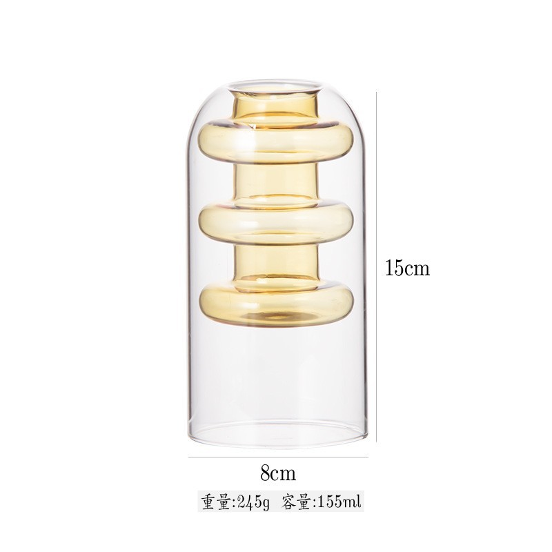 북유럽 현대 미니멀리스트 컬러 유리 크리 에이 티브 더블 레이어 투명 꽃병 레스토랑 탁상 장식품 맞춤형 수경 꽃 장치스토어 가기