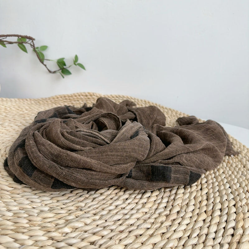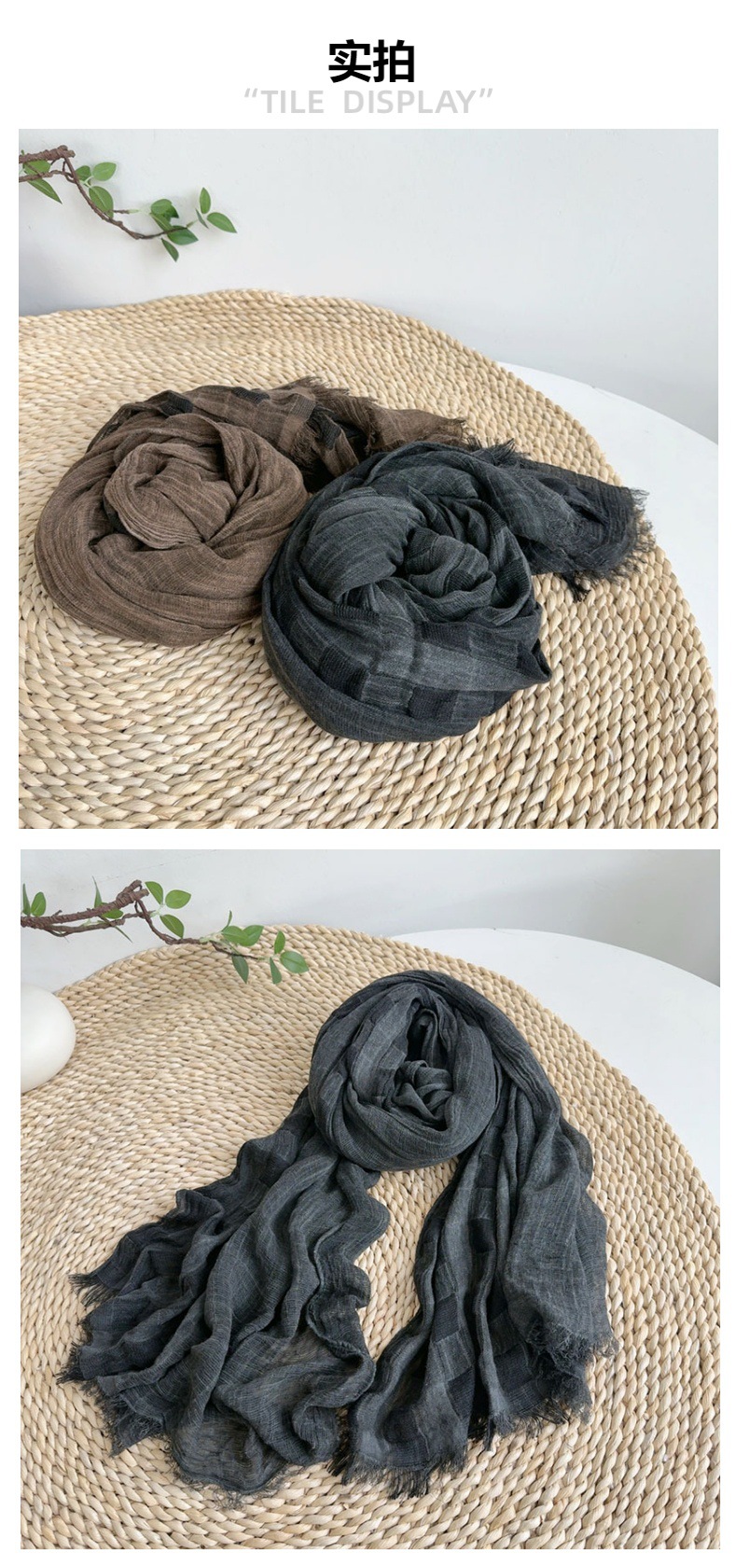 레트로 올드 염색 격자 무늬 솔리드 컬러 스카프, 예술적이고 다재다능한 목 보호 실크 스카프, 봄 여름 여행 방풍 따뜻한 목도리