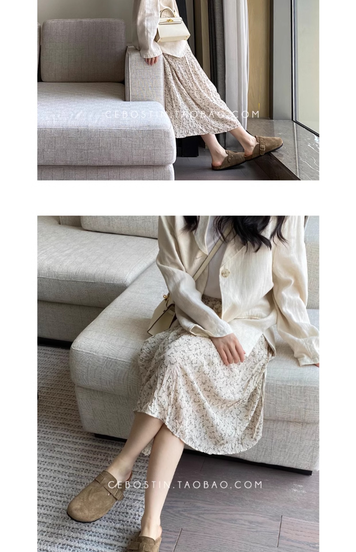 게으른 신발 프렌치 레트로 소프트 하단 하프 슬리퍼 여성 싱글 레이어 신발 플랫 슬립 온 버켄 스톡