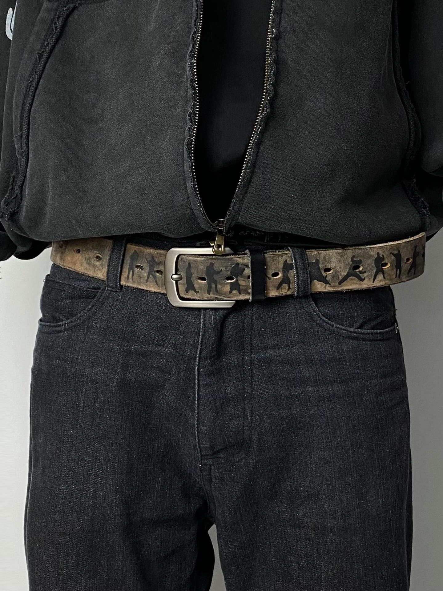 태지 오래 된 가죽 벨트 상단 레이어 소 가죽 36 홀 상단 레이어 소 가죽 필링 벨트스토어 가기