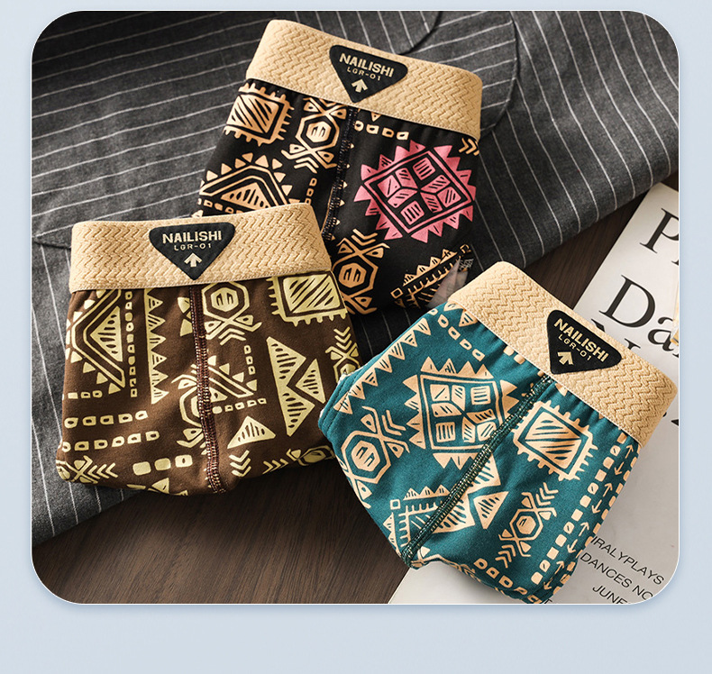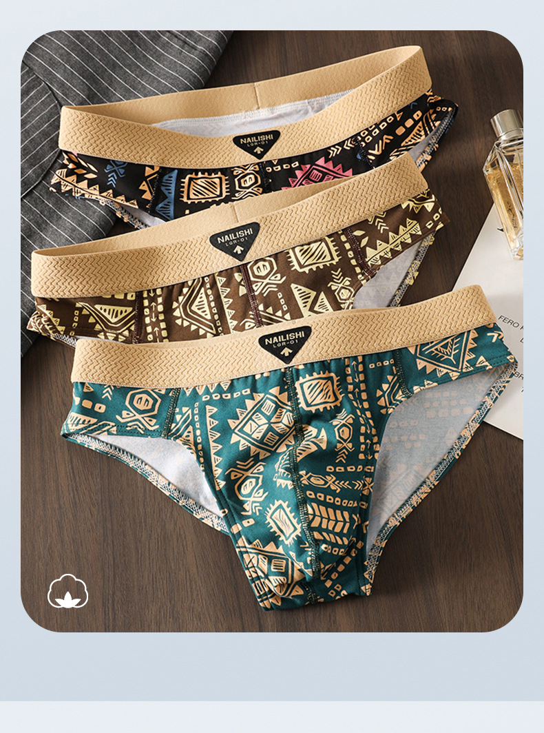 남성 속옷 브리프 민족 스타일 트렌디 남성 복서 통기성 청소년 중간 허리 브리프 반바지