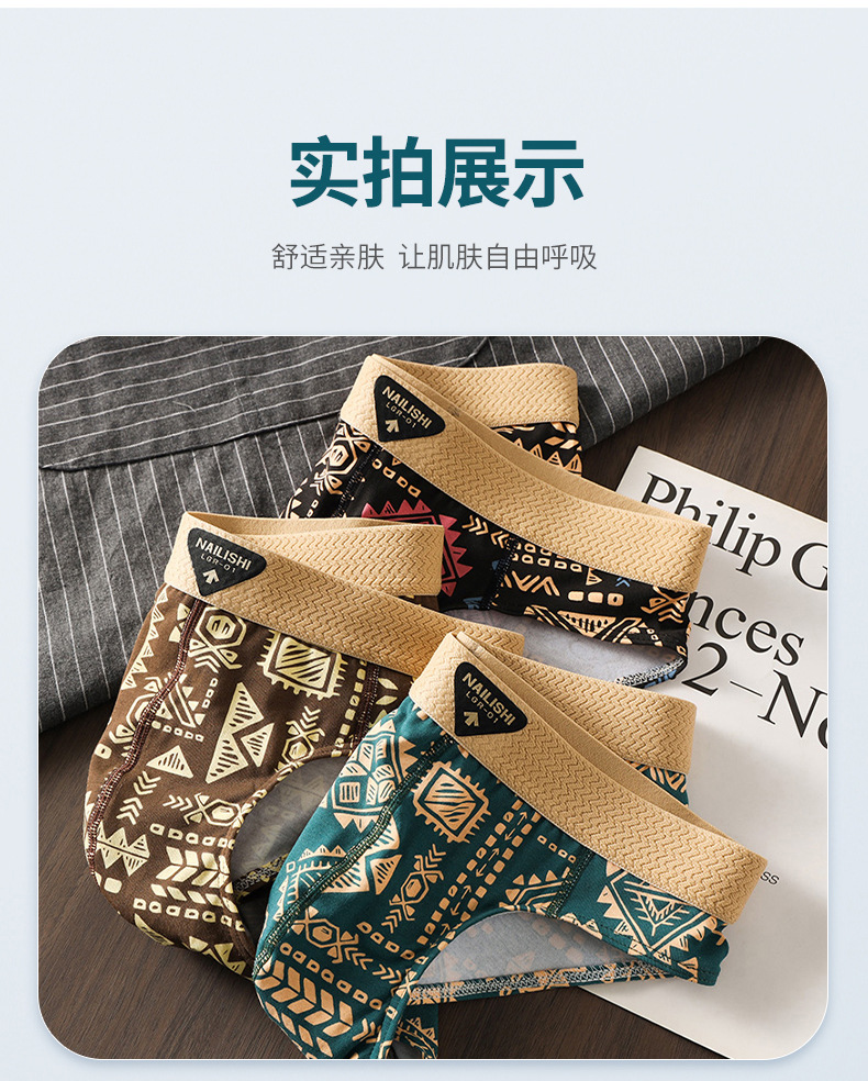 남성 속옷 브리프 민족 스타일 트렌디 남성 복서 통기성 청소년 중간 허리 브리프 반바지스토어 가기