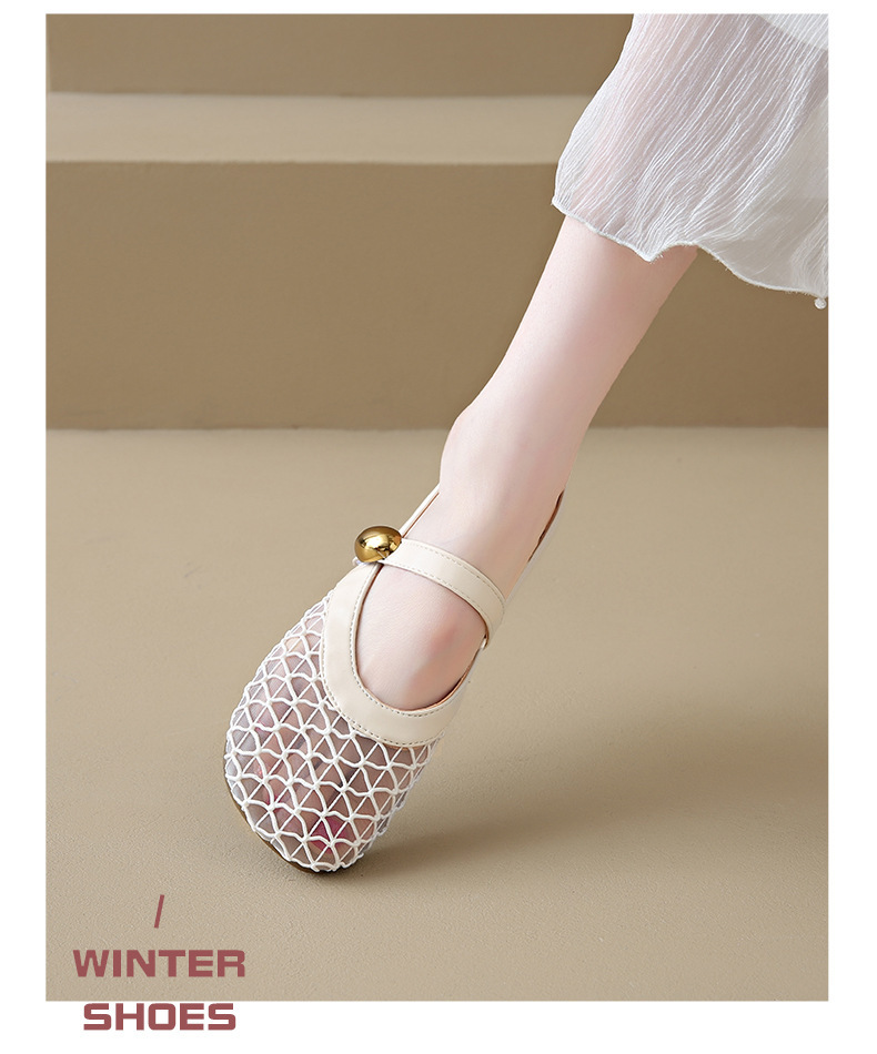 여성을위한 메쉬 통기성 세련된 발가락 반 슬리퍼 2025 여름 새로운 힐없는 두꺼운 굽 게으른 중공 샌들스토어 가기