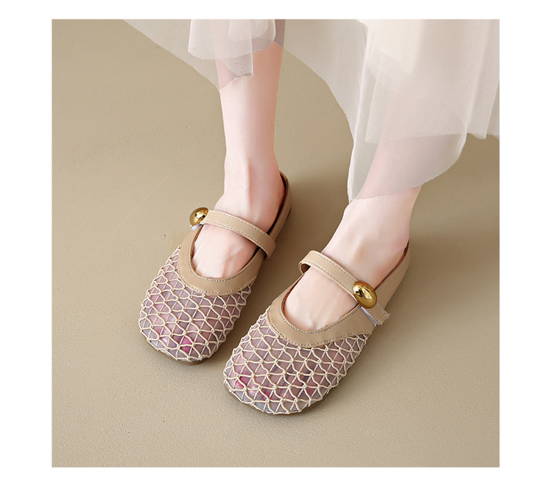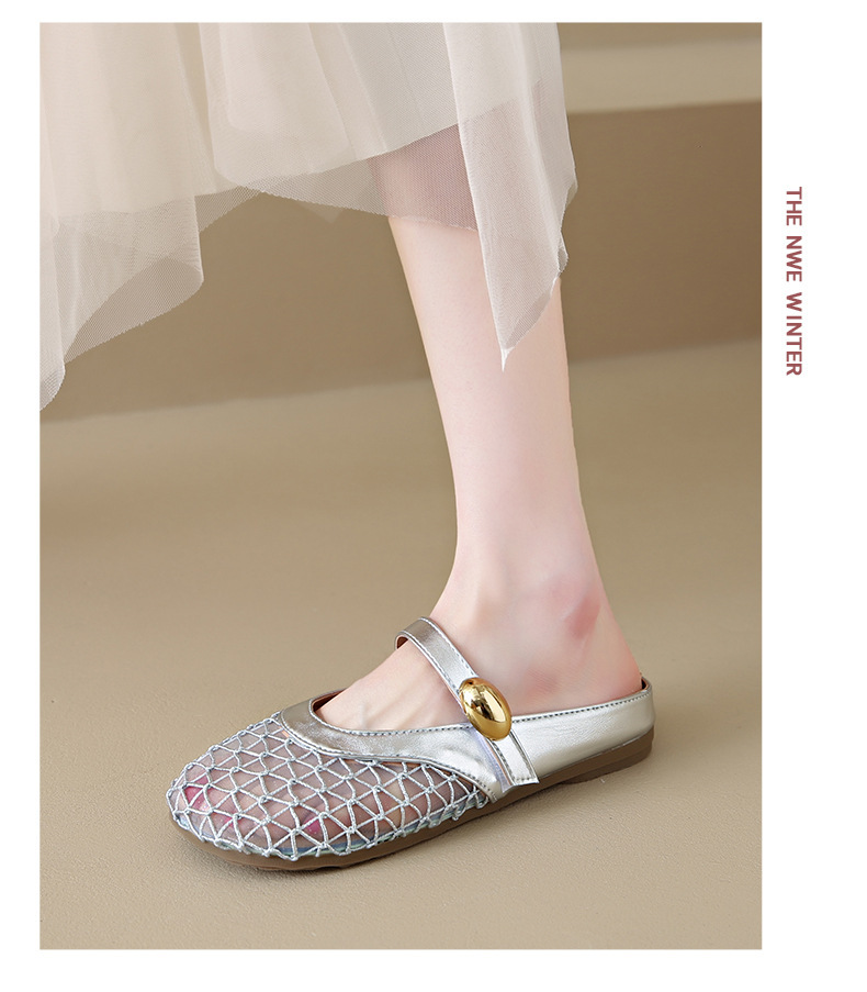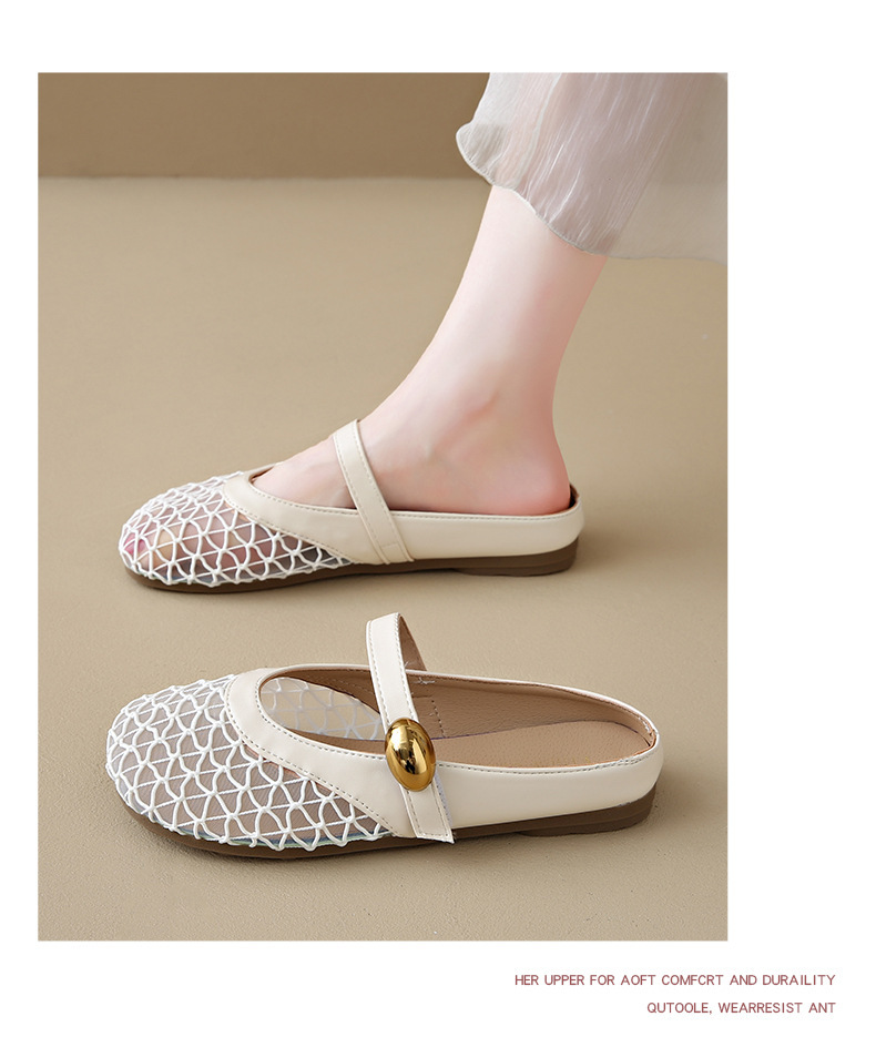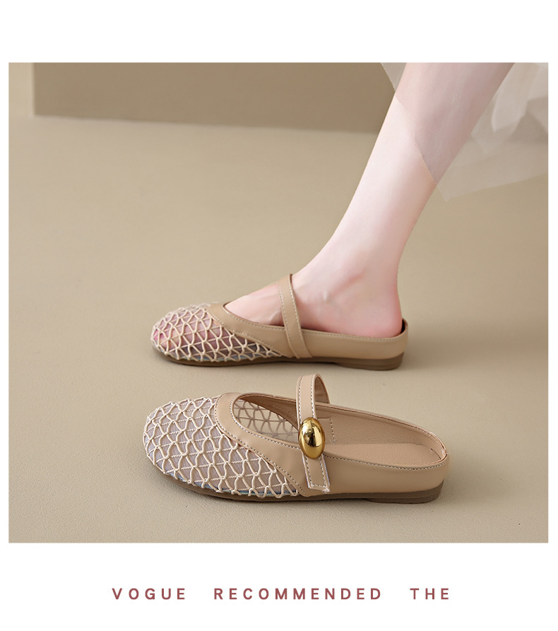여성을위한 메쉬 통기성 세련된 발가락 반 슬리퍼 2025 여름 새로운 힐없는 두꺼운 굽 게으른 중공 샌들