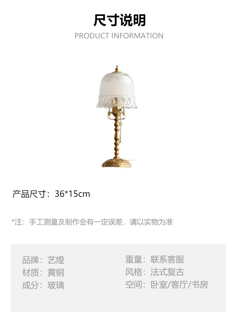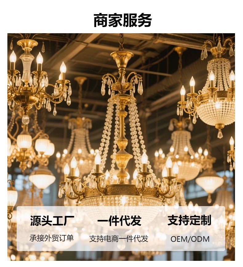 江门市艺煌照明有限公司于2014年开启了黄铜产品的设计生产制造,坐落于中国灯饰产业核心区—广东中山古镇,是一家集研发、设计、生产、销售于一体的高端黄铜灯饰制造企业。公司专注打造法式黄铜材质轻奢风格的壁灯、台灯、大型法式吊灯、落地灯等全品类黄铜灯饰,以“传统工艺赋能现代美学”为理念,为全球客户提供兼具艺术价值与实用性的高品质照明解决方案。