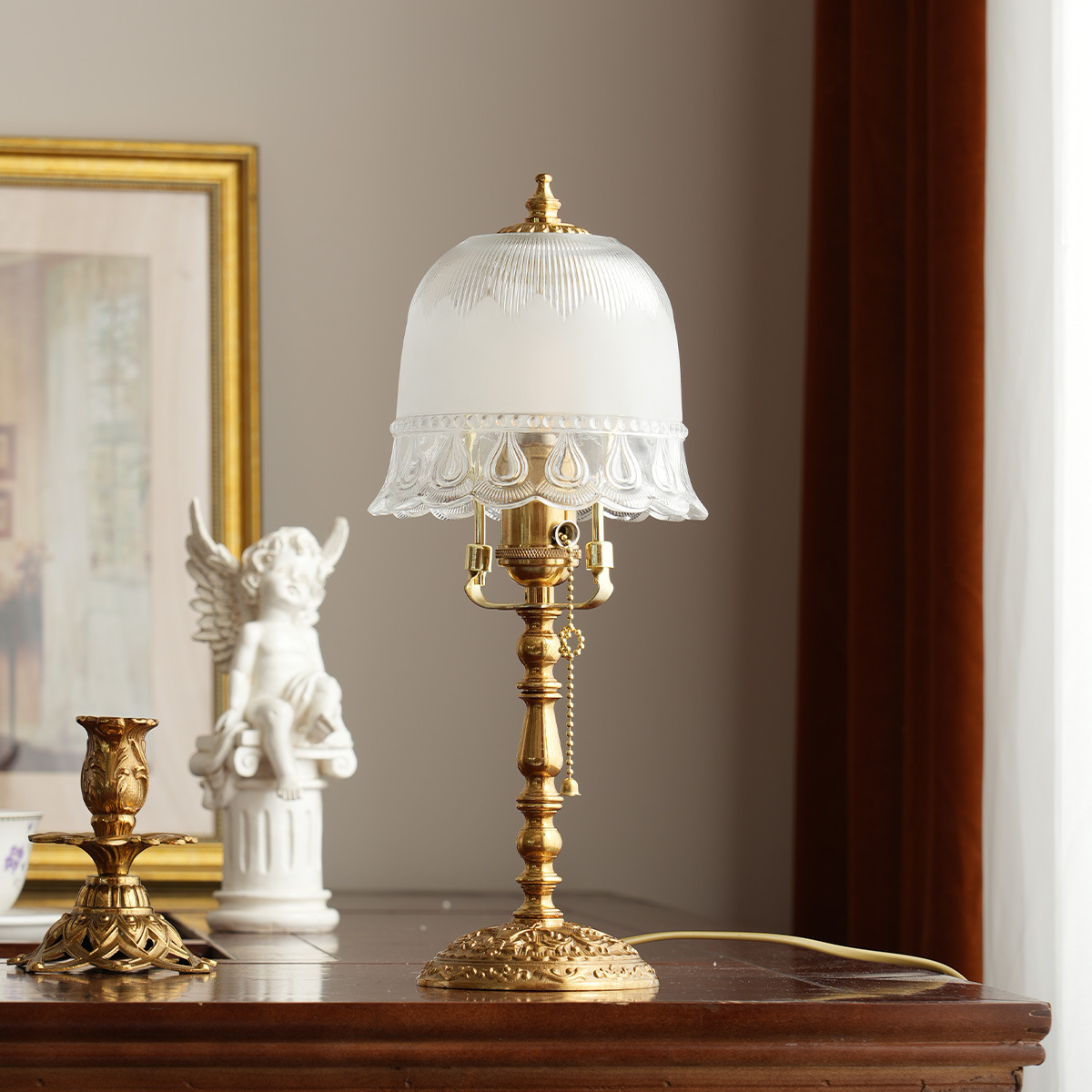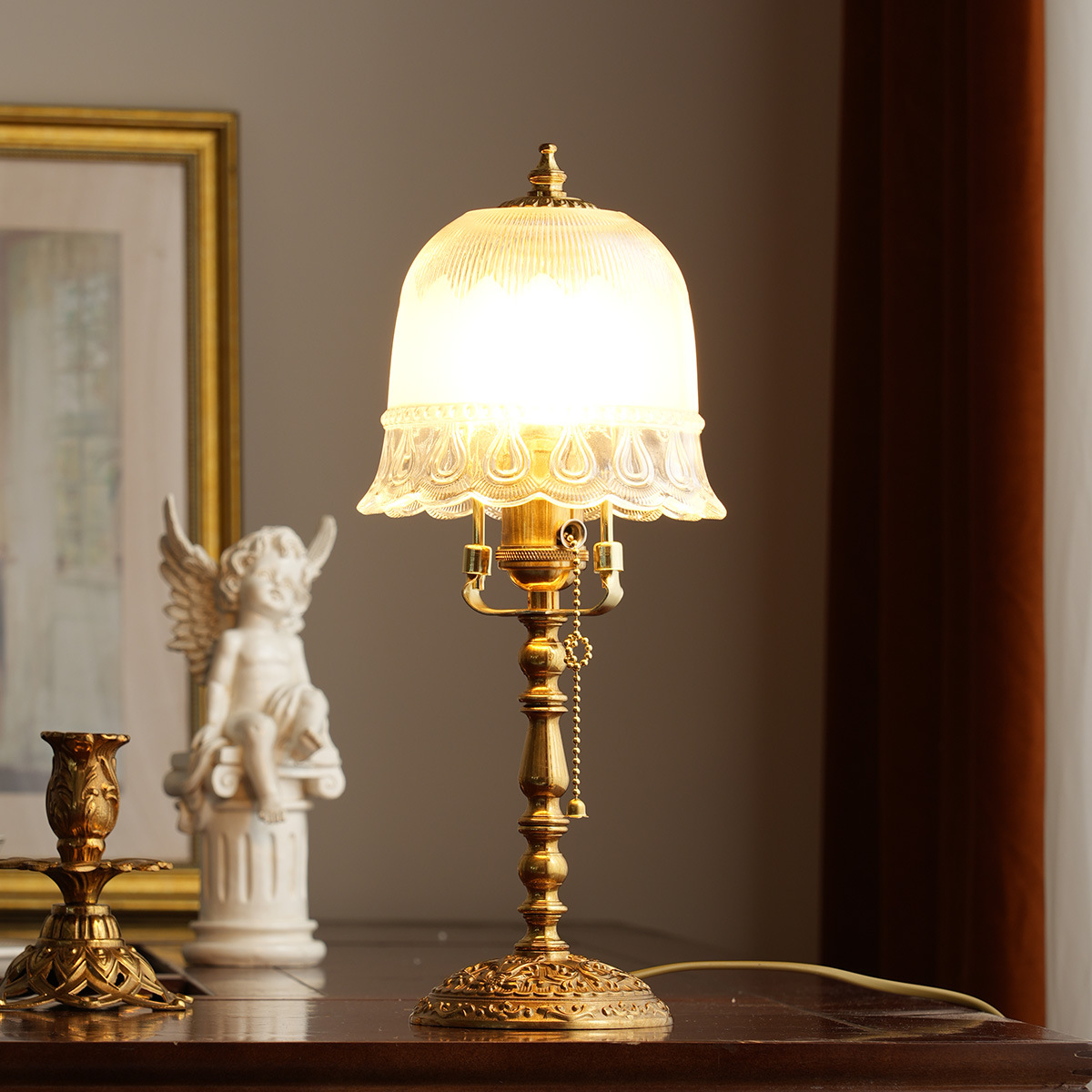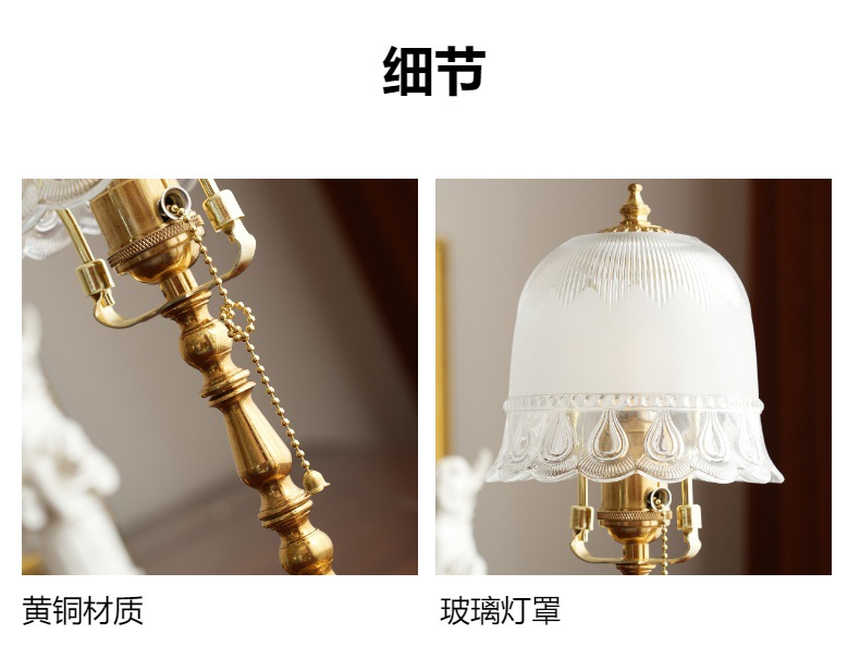 프랑스 거실 빌라 황동 테이블 램프 연구 호텔 모델 룸 장식 미국 패턴 디자인 복고풍