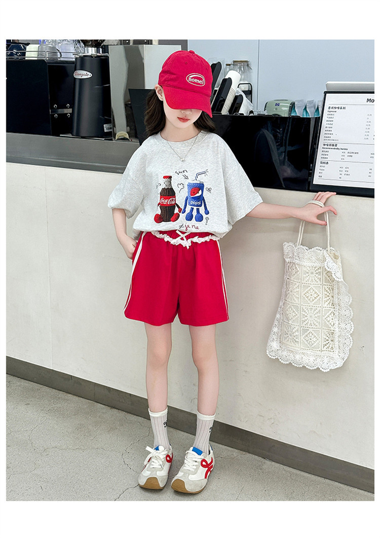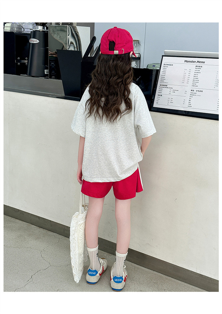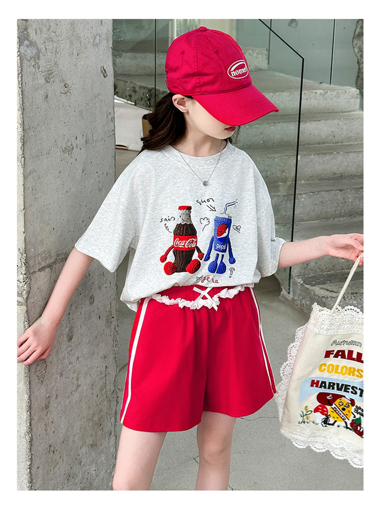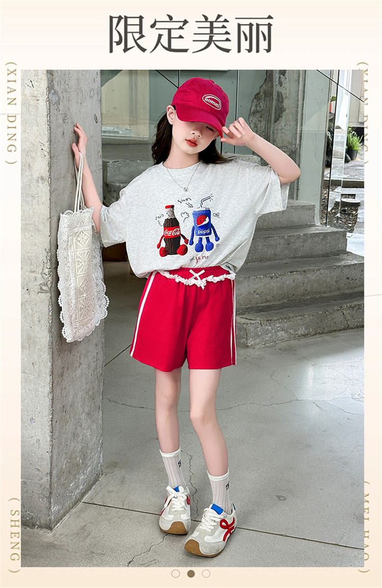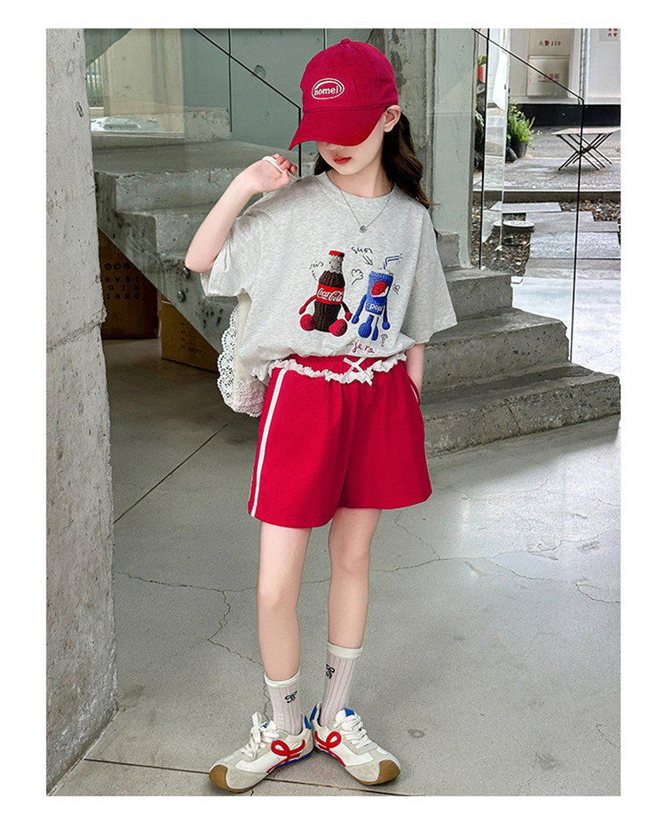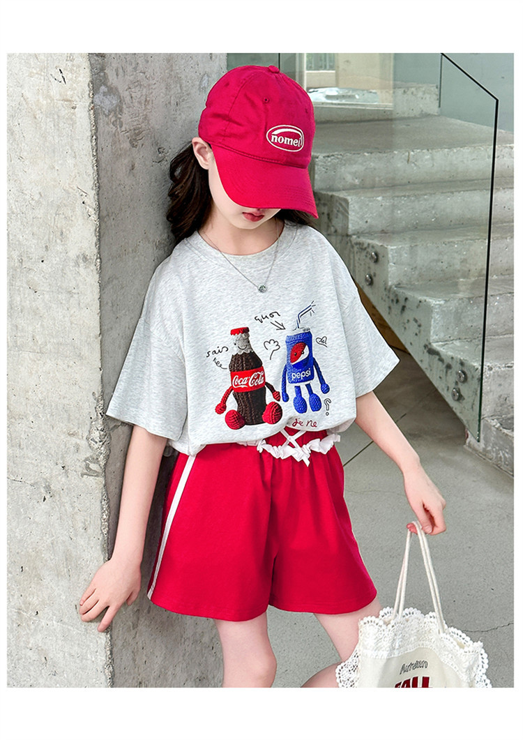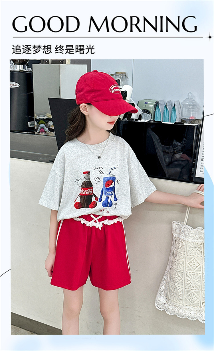 여자 반팔 티셔츠 여름 세트 2025 새로운 어린이 서양식 유행 중대형 어린이 캐주얼 올 매치 투피스 세트