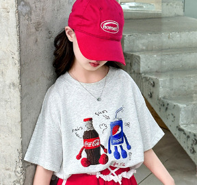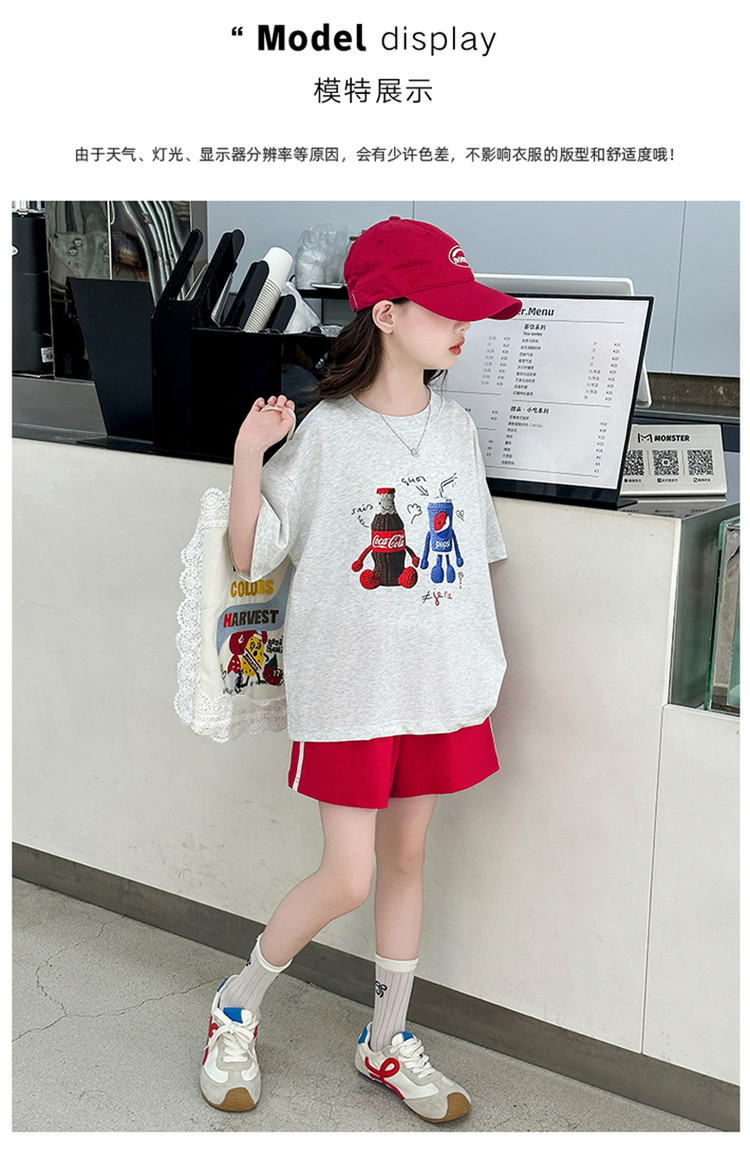 여자 반팔 티셔츠 여름 세트 2025 새로운 어린이 서양식 유행 중대형 어린이 캐주얼 올 매치 투피스 세트스토어 가기