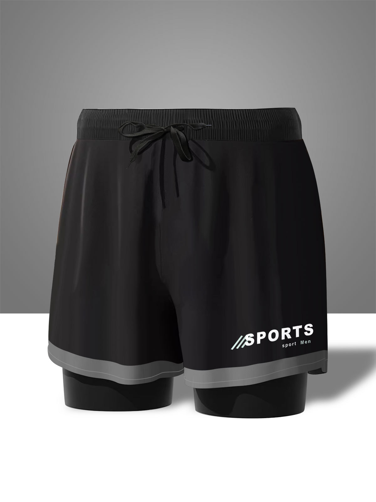 수영 트렁크 남자 더블 레이어 안티 당혹감 느슨한 플러스 사이즈 전문 성인 빠른 건조 5 점 남성 패션 수영 트렁크 온천