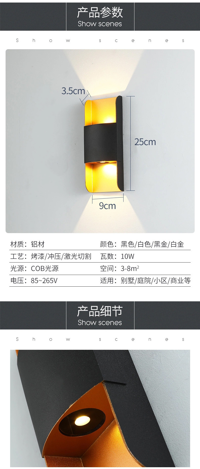 국경 간 신제품 LED 야외 벽 램프 크리 에이 티브 빌라 외벽 안뜰 방수 벽 램프 간단한 침실 통로 램프