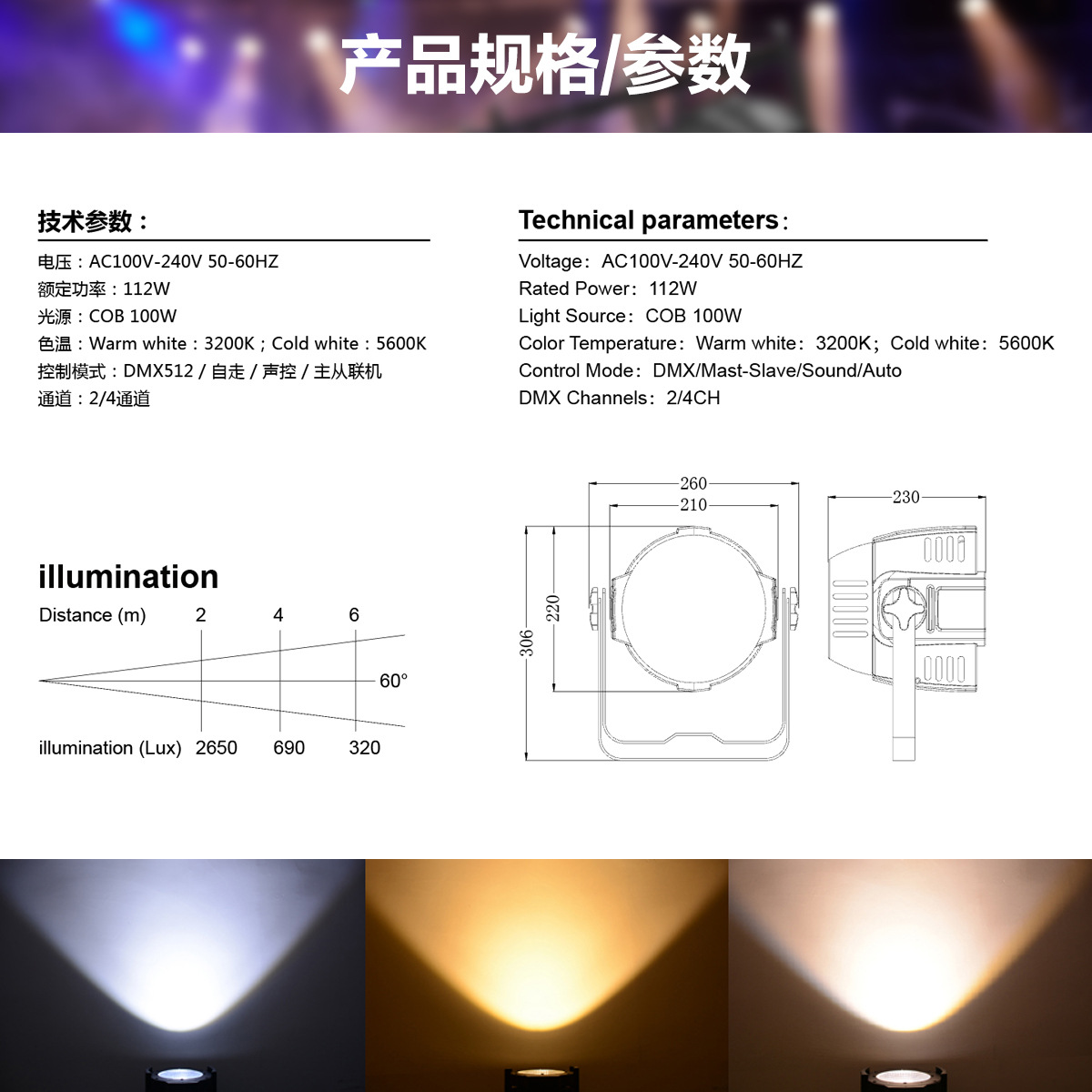 대형 COB 무대 보조 조명 200W 관객 조명 쇼 무대 조명 바 웨딩 소프트 라이트