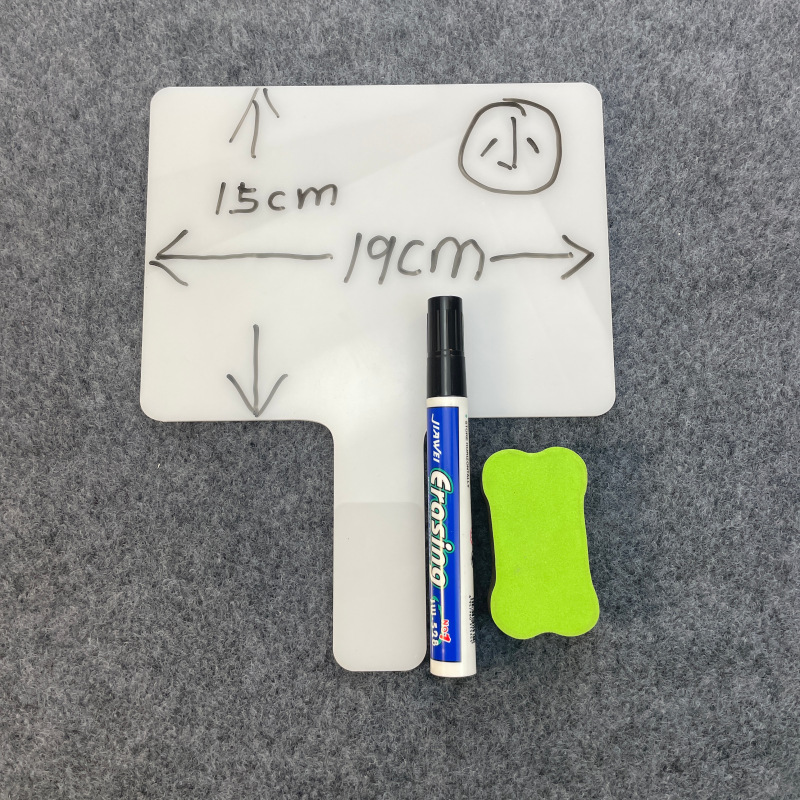 • A4 종이 손 카드에 삽입된 아크릴 소재, 필기용 지우개 포함, 뒷면에 필기용 화이트보드 펜