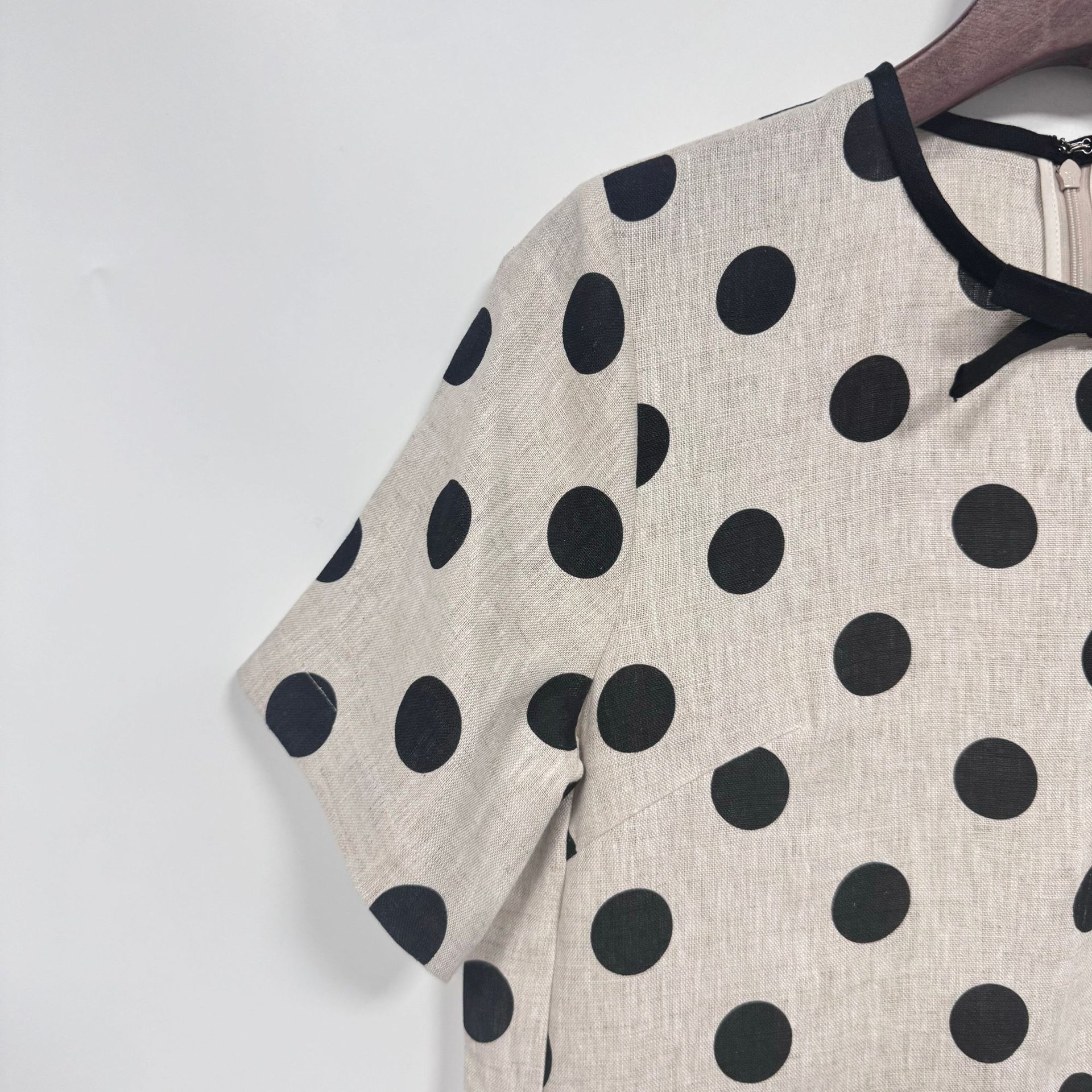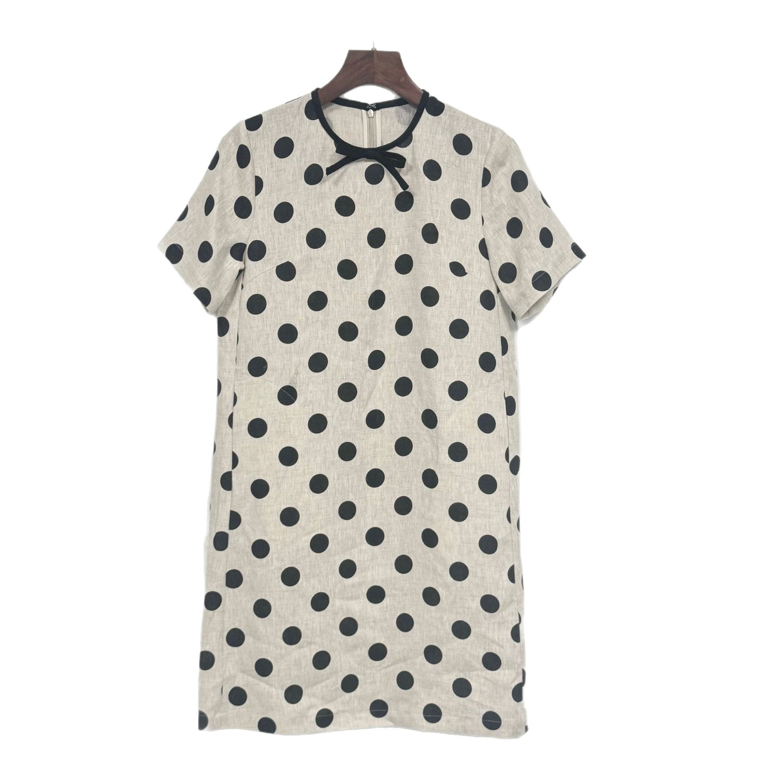 IC25 여름 새로운 간단한 캐주얼 트윌 린넨 짧은 소매 라운드 넥 보우 폴카 도트 원피스