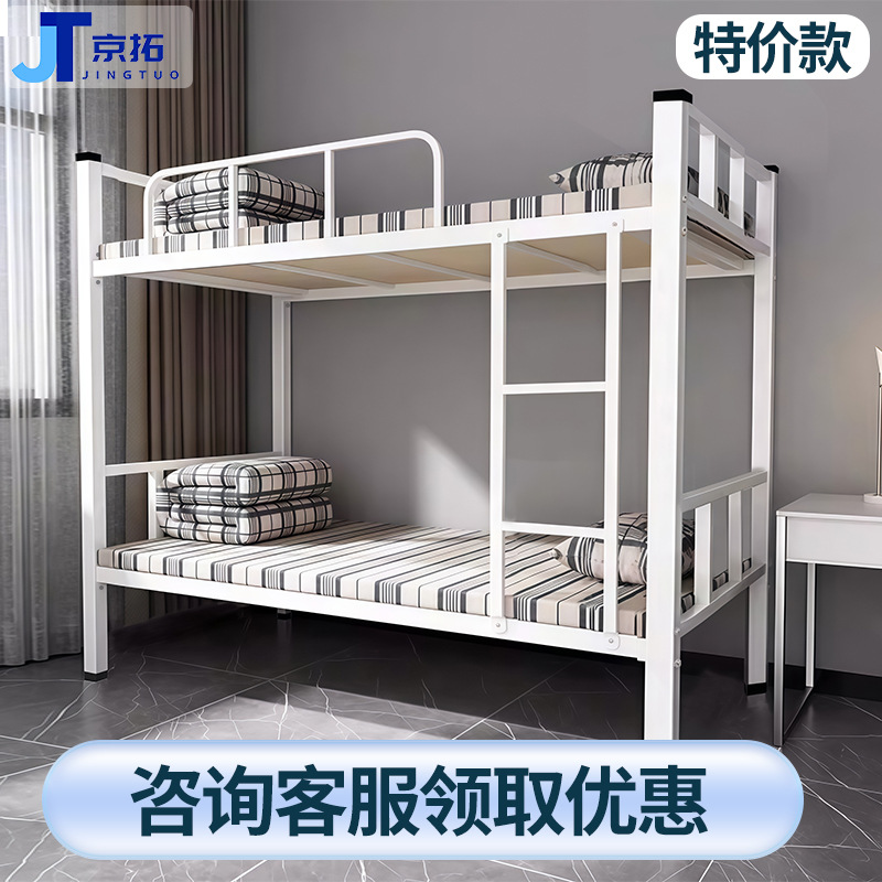 상층 및 하층 강철 사각 파이프 침대 학생 직원 기숙사 상하 이층 철제 침대 높고 낮은 침대 사이트 두꺼운 철제 프레임 침대스토어 가기