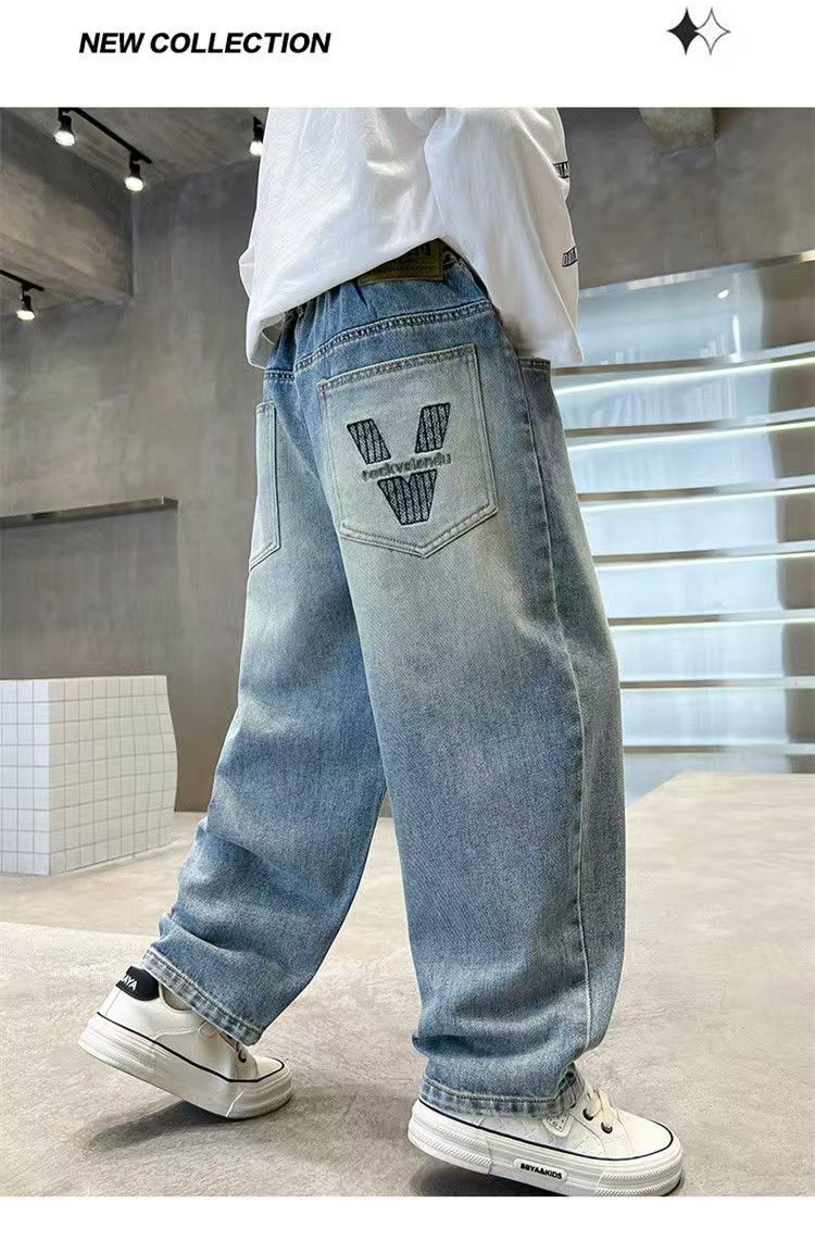 소년 청바지 봄과 가을 2025 새로운 아기 잘 생긴 봄 느슨한 직선 캐주얼 어린이 봄 바지스토어 가기