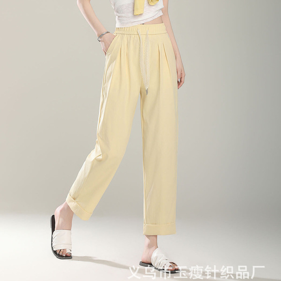 夏季新款法棍裤小脚口女宽松休闲裤子女款外传马卡龙色女裤