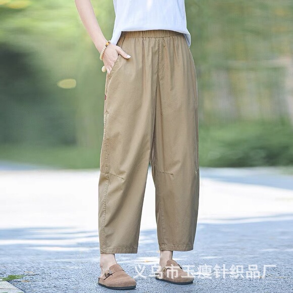 日系裤子女夏季薄款宽松八分休闲裤气球裤小个子