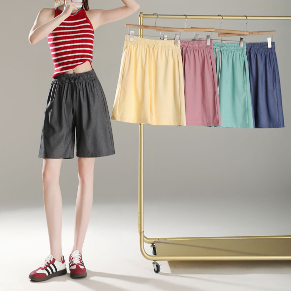 夏新款天丝牛仔五分短裤宽松简约瑜伽女抽绳显瘦外穿跑步运动短裤