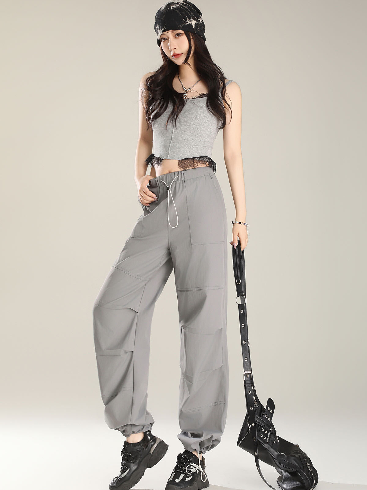 여름 얇은 2025 어썰트 파라트리퍼 작업복 아메리칸 스타일 쁘띠 여성 캐주얼 스트레이트 하이웨이스트 등산 와이드 팬츠