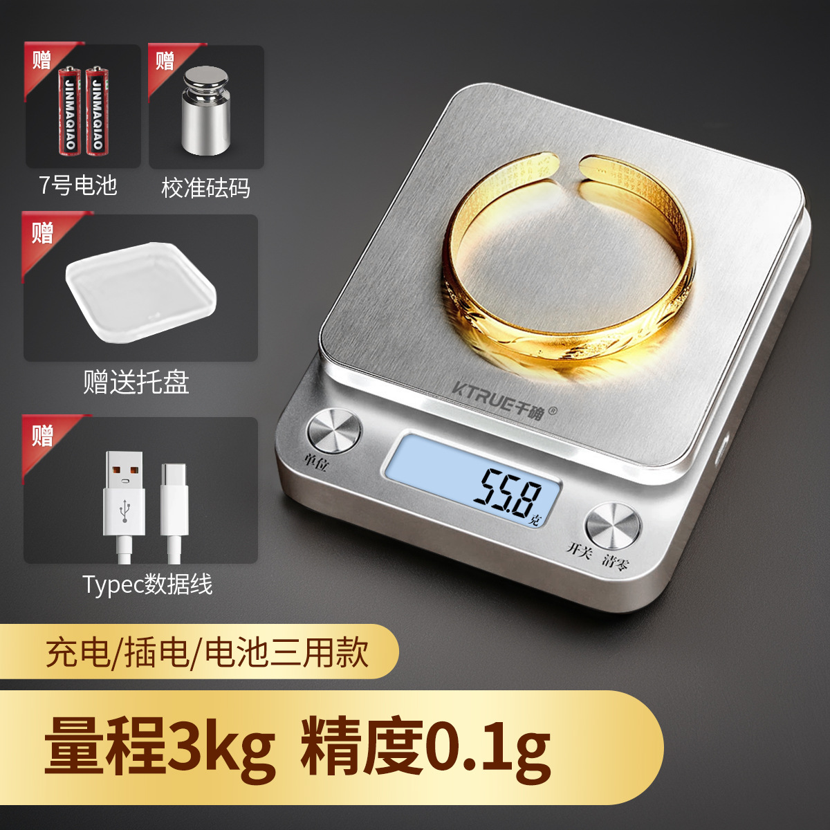• 3회용 충전식 모델 [300g/0.01g] 특수 트레이 + 교정 분동 + 업그레이드된 방수