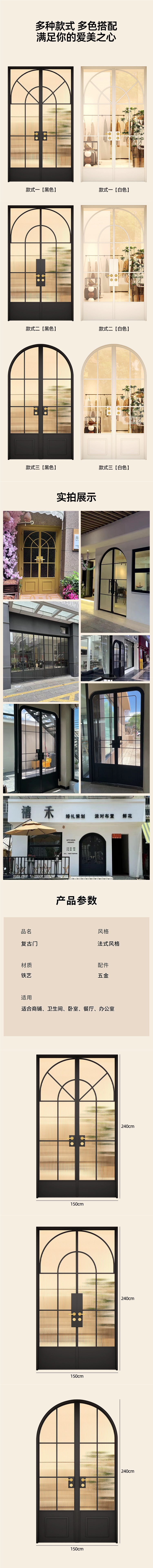프랑스 복고풍 철 유리 문 입구 발코니 매장 의류 매장 문 미용실 양문형 도어