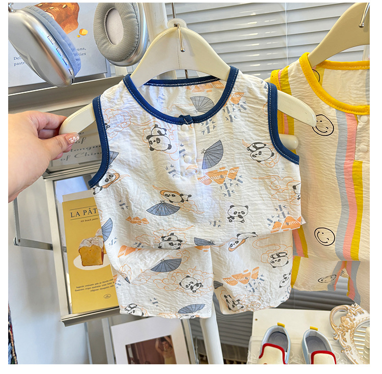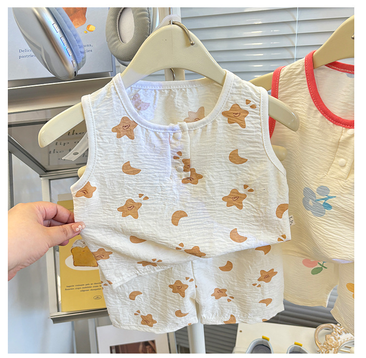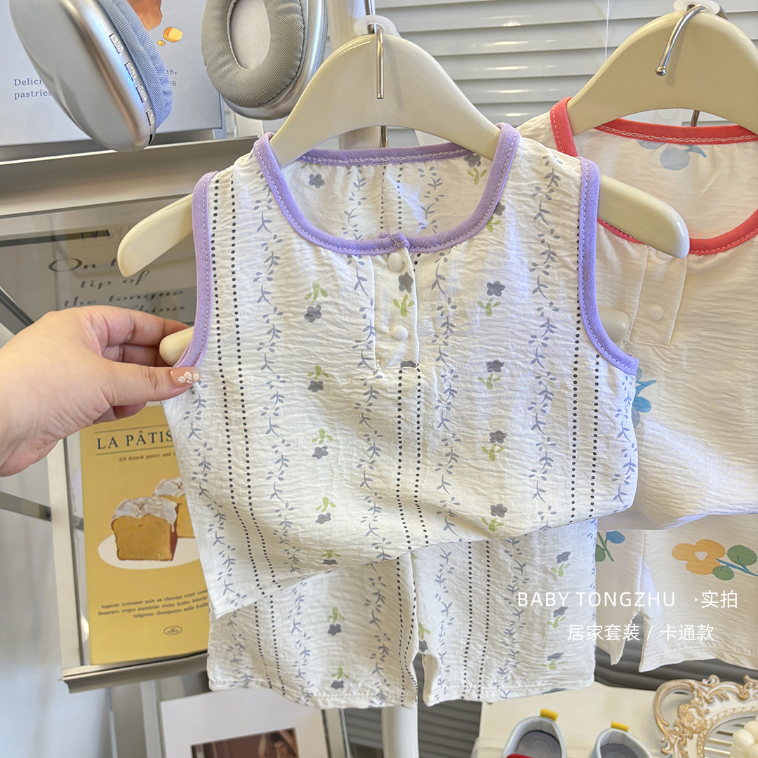 어린이 조끼 세트 여름 소년 소녀 반바지 파자마 아기 한국식 홈 옷 큰 어린이 민소매 반바지 세트스토어 가기