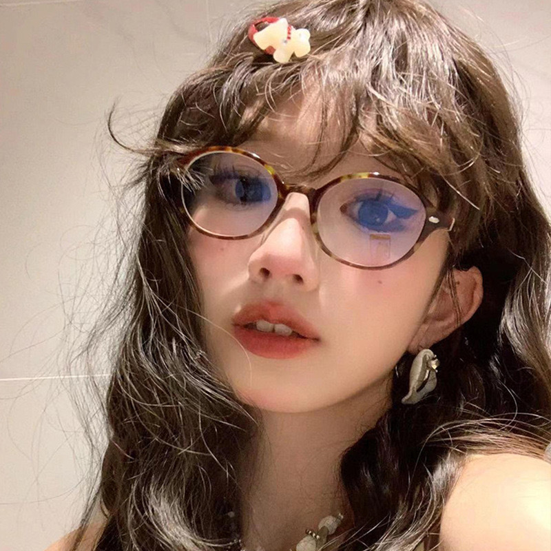 남성과 여성을위한 근시 안티 블루 라이트 안경 프레임이있는 한국 복고풍 타원형 소형 프레임 표범 인쇄 괴짜 쌀 네일 거북이 도매