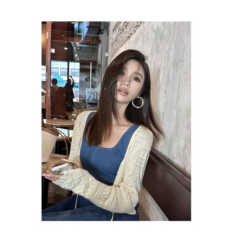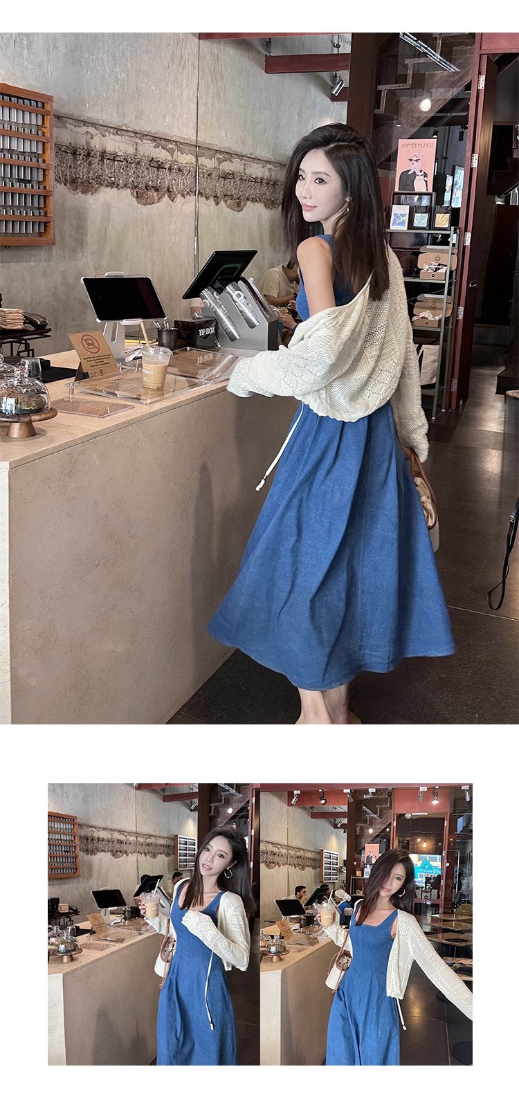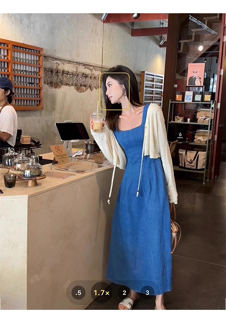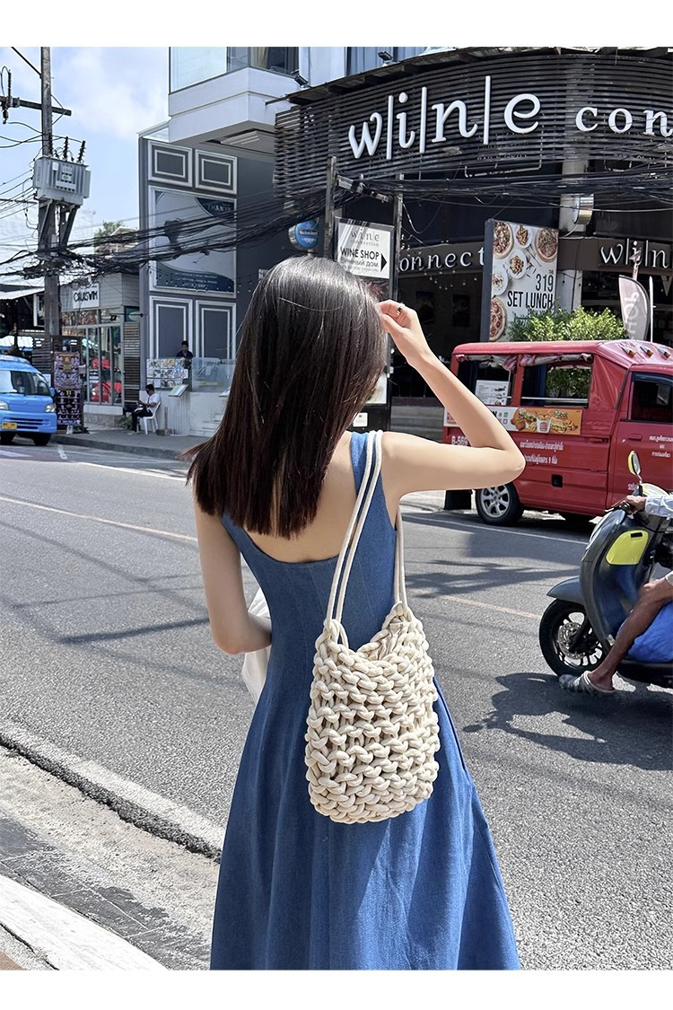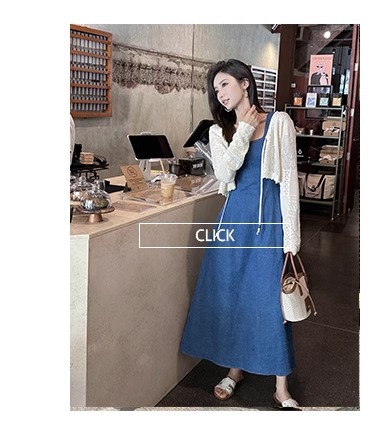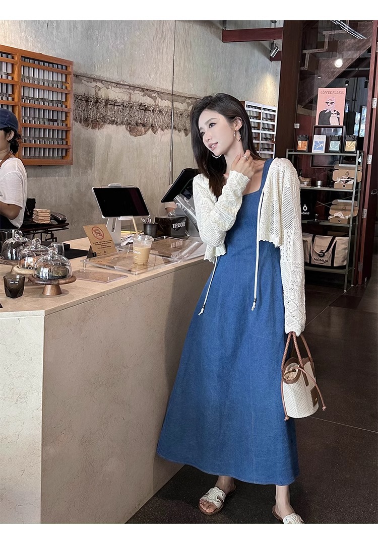 블루 데님 슬링 원피스 여름 여성 프랑스 스타일 우아한 허리 슬리밍 민소매 조끼 원피스 휴일 긴 원피스스토어 가기