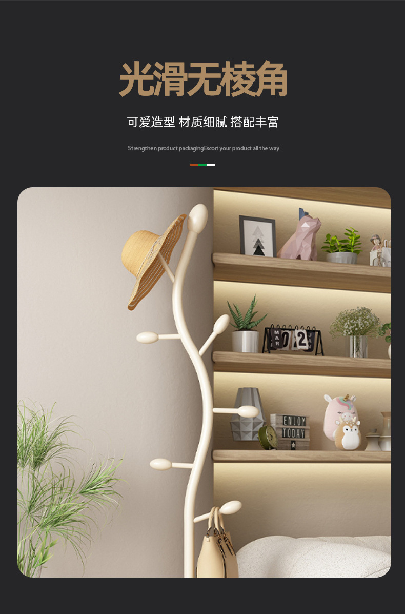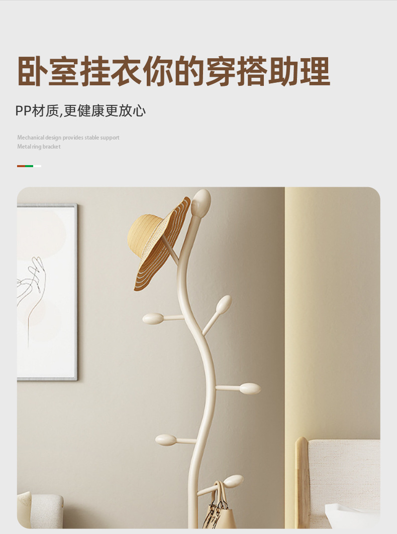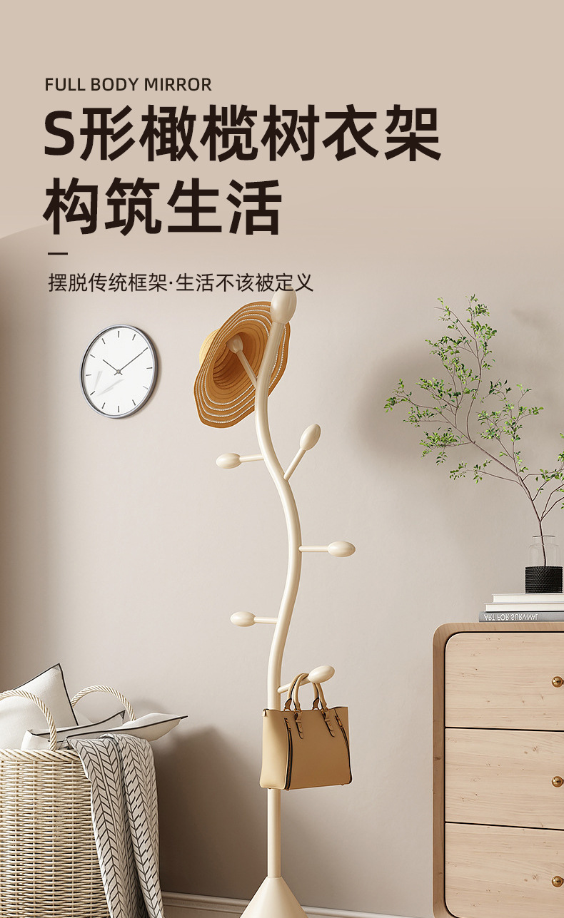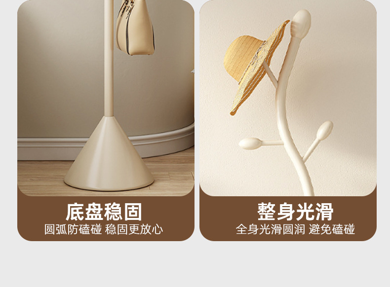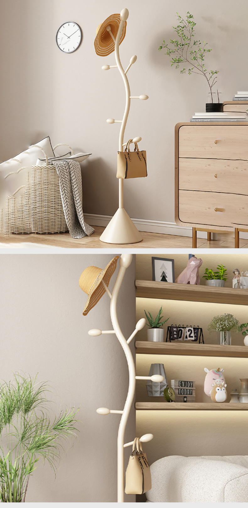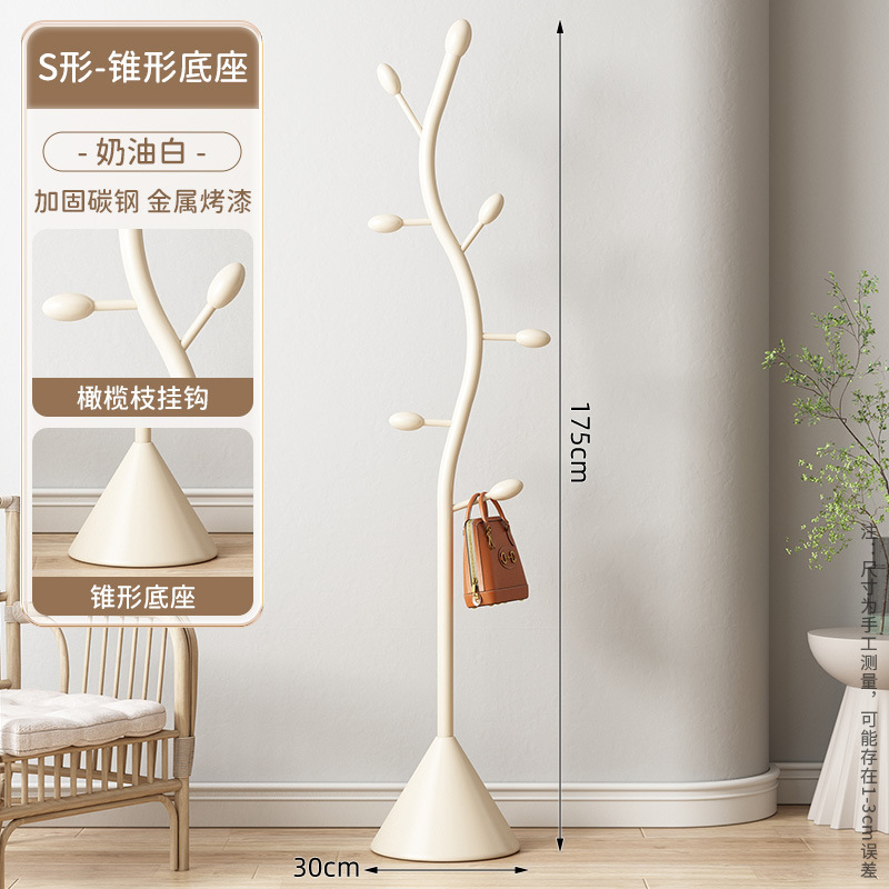 옷걸이 크림색 코트걸이 스탠드형 옷걸이 가정용 침실 물고기뼈 모양 가방걸이 옷걸이 수납장