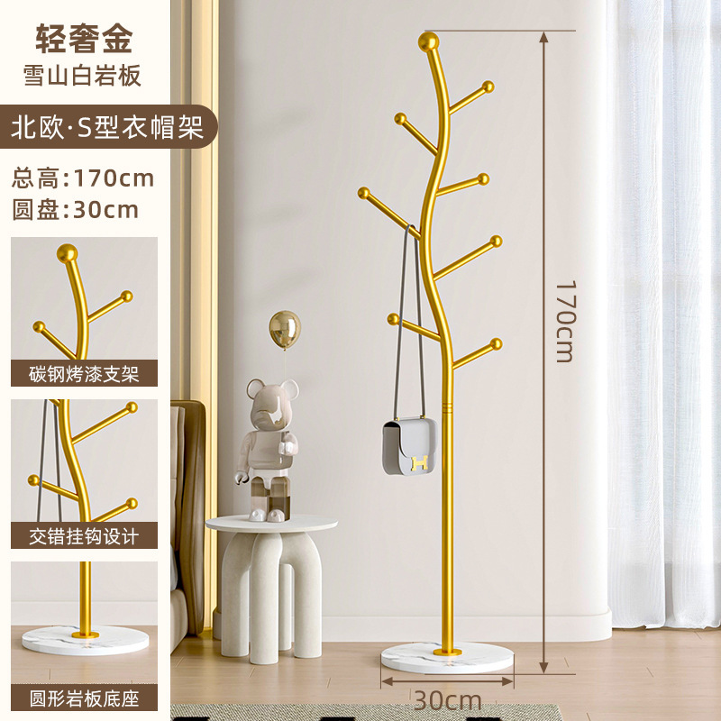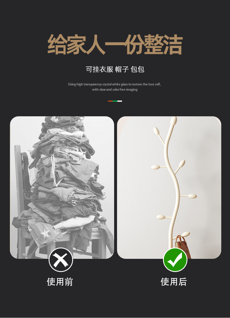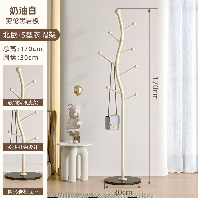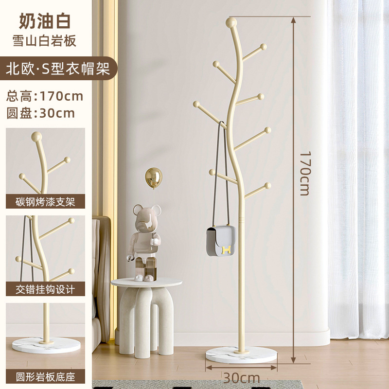 옷걸이 크림색 코트걸이 스탠드형 옷걸이 가정용 침실 물고기뼈 모양 가방걸이 옷걸이 수납장스토어 가기