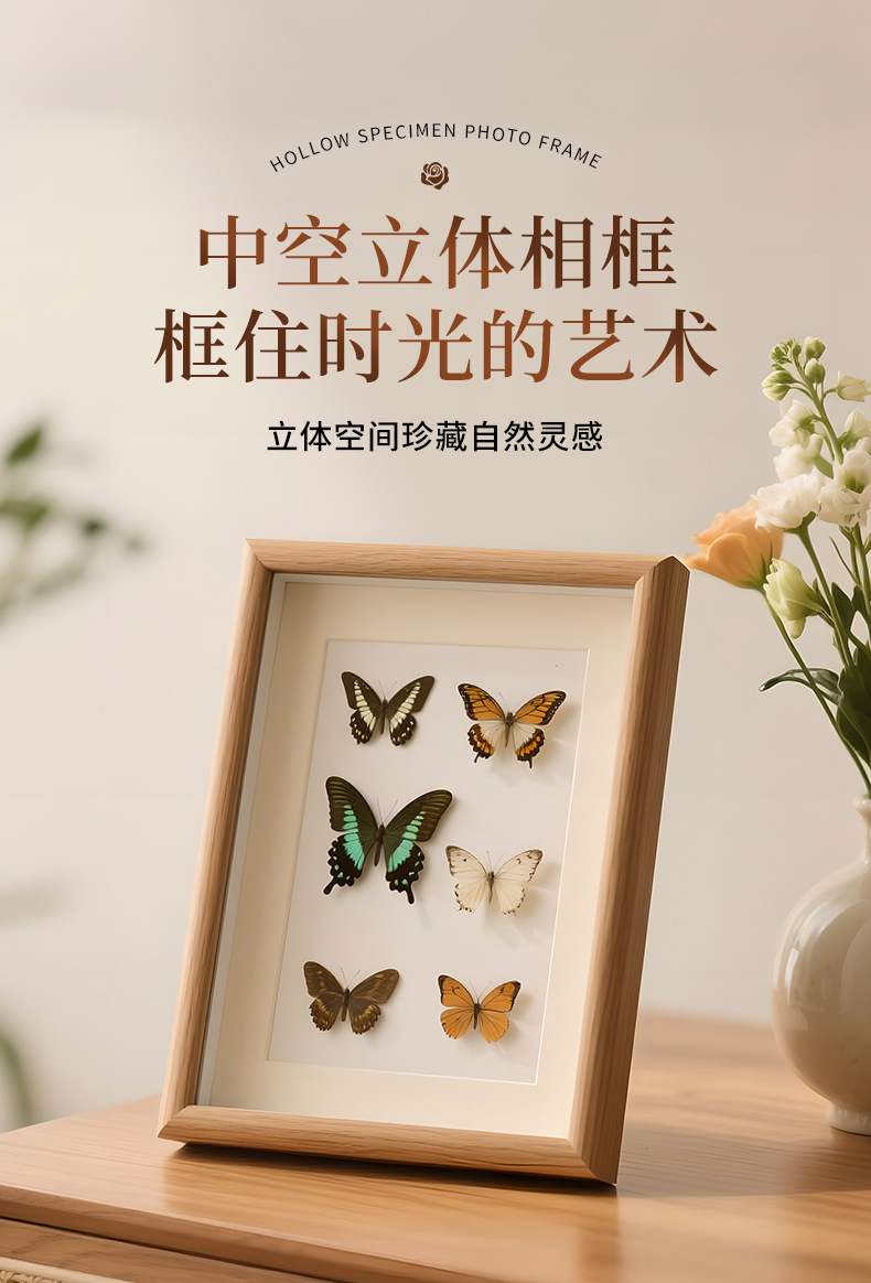 나무 중공 3 차원 사진 프레임 실제 나비 표본 프레임 DIY 수제 곤충 식물 불멸의 표본 프레임 장식품스토어 가기
