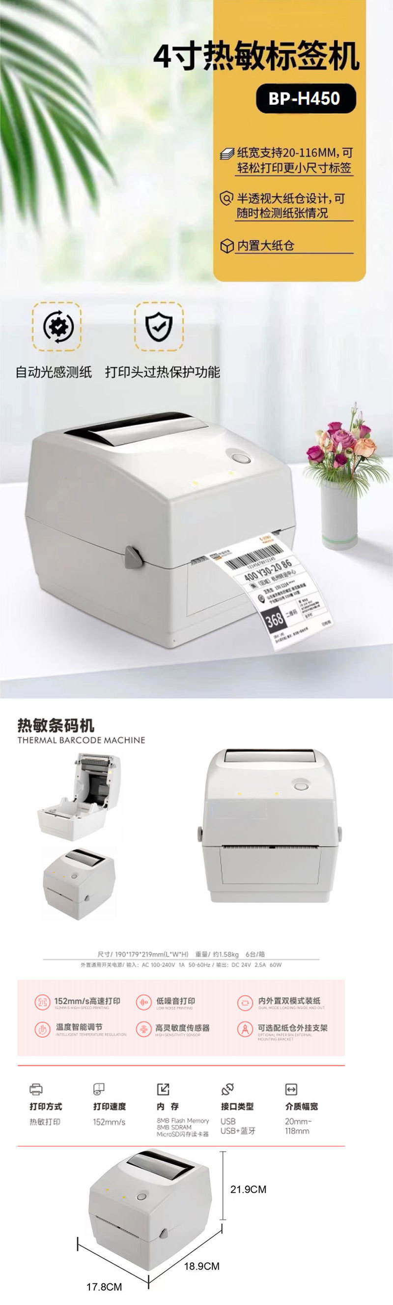 익스프레스 라벨 프린터 블루투스 H450 Amazon AliExpress Shopee 국경 간 전자 상거래 열 라벨 기계스토어 가기