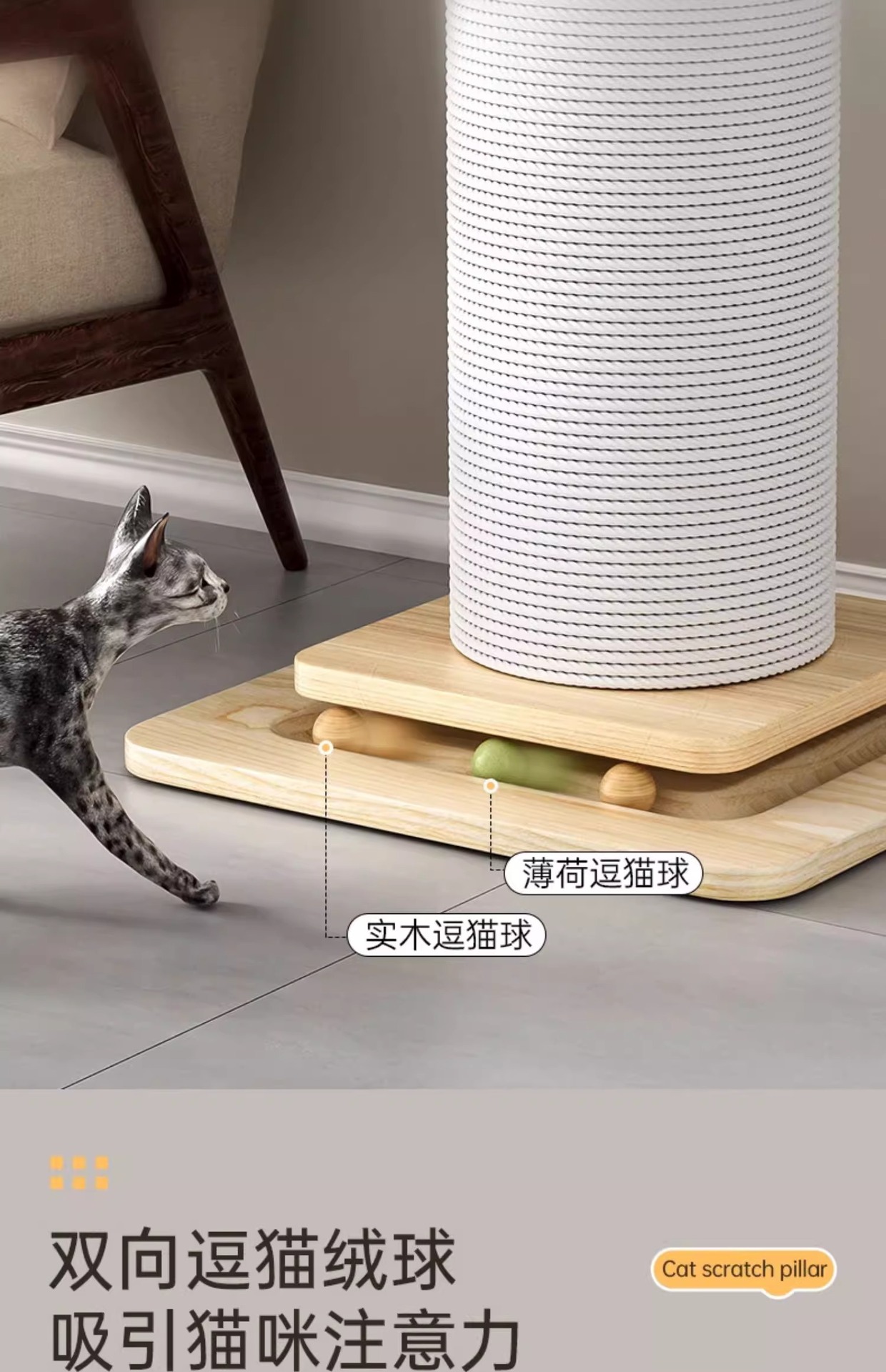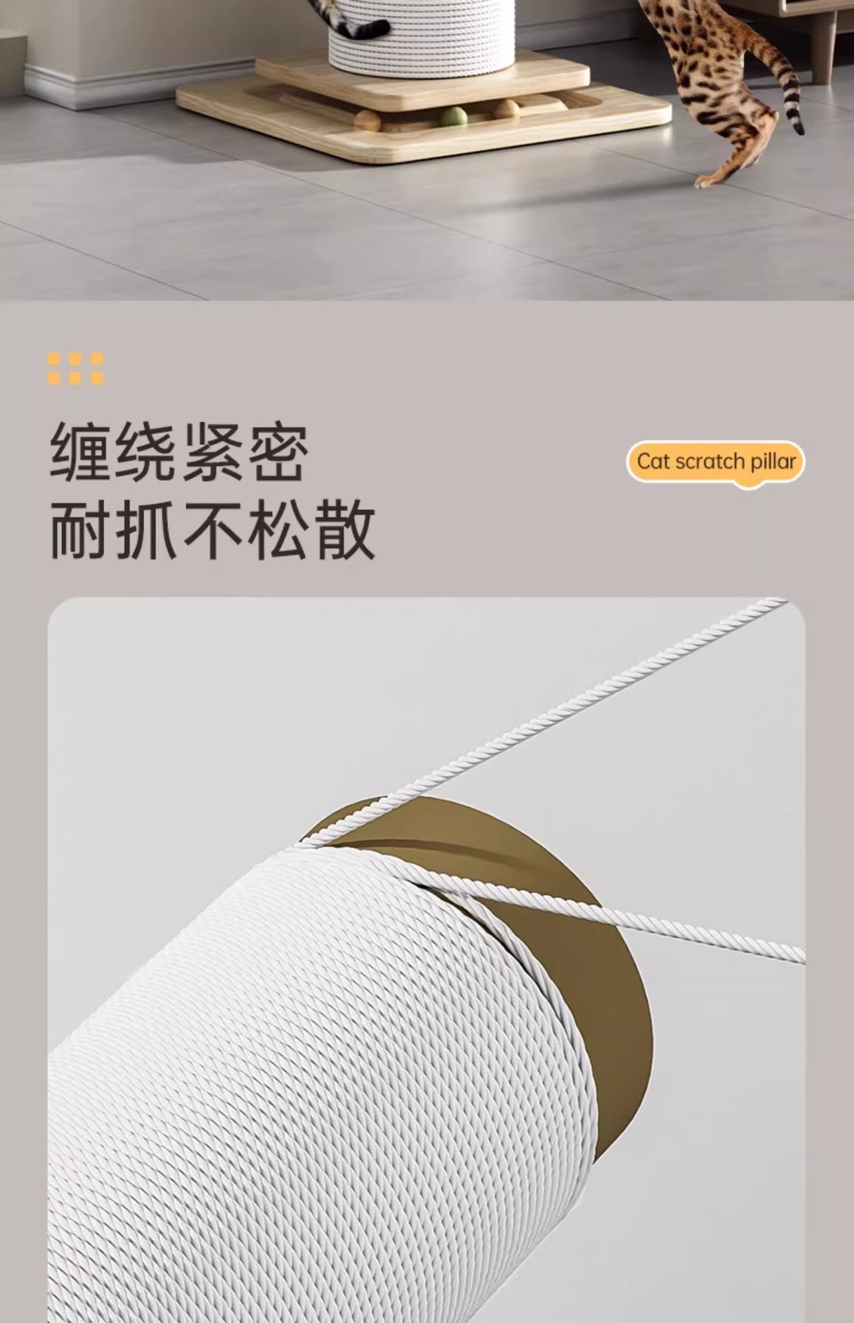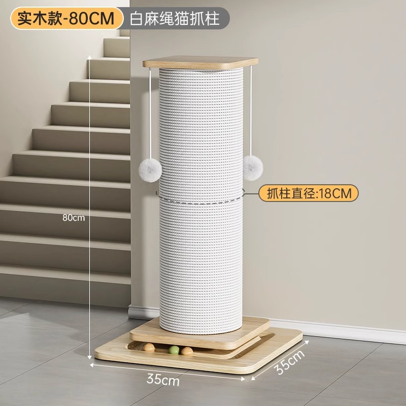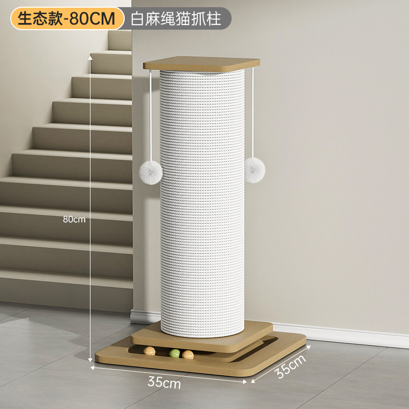 • 대형 흰색 대마줄 고양이 긁기 포스트(원목판 80cm)
