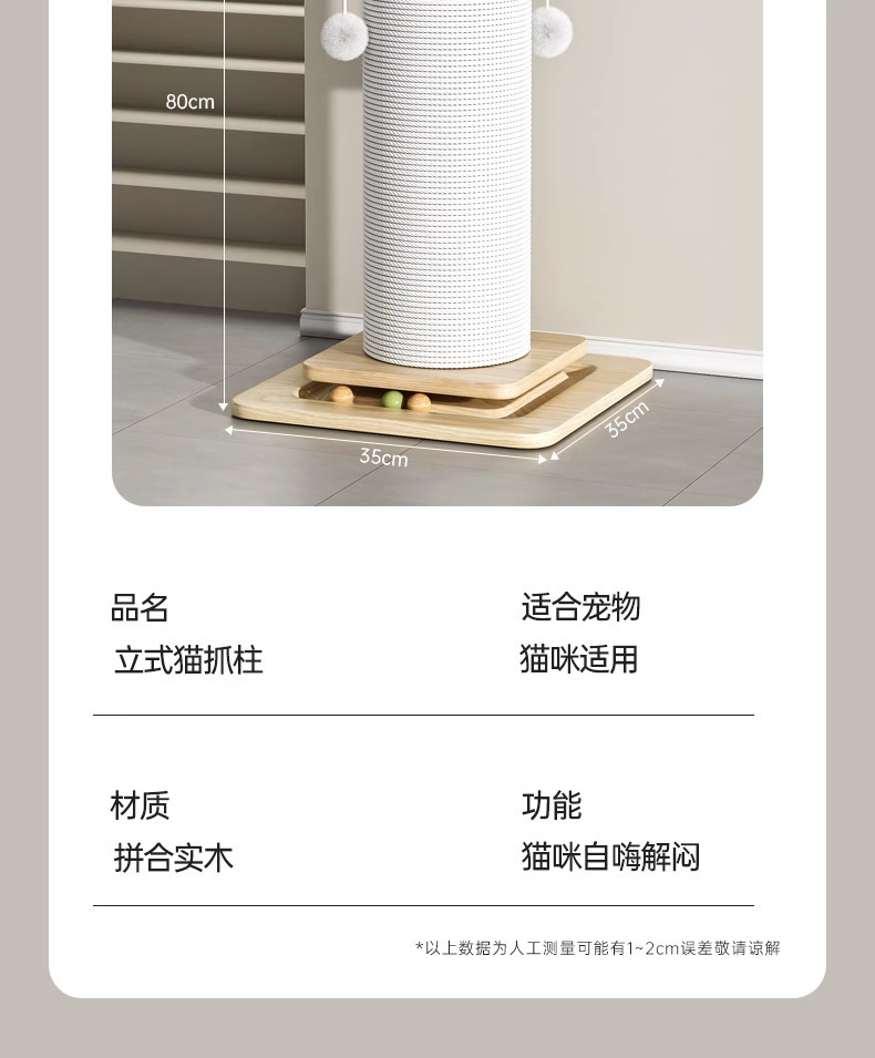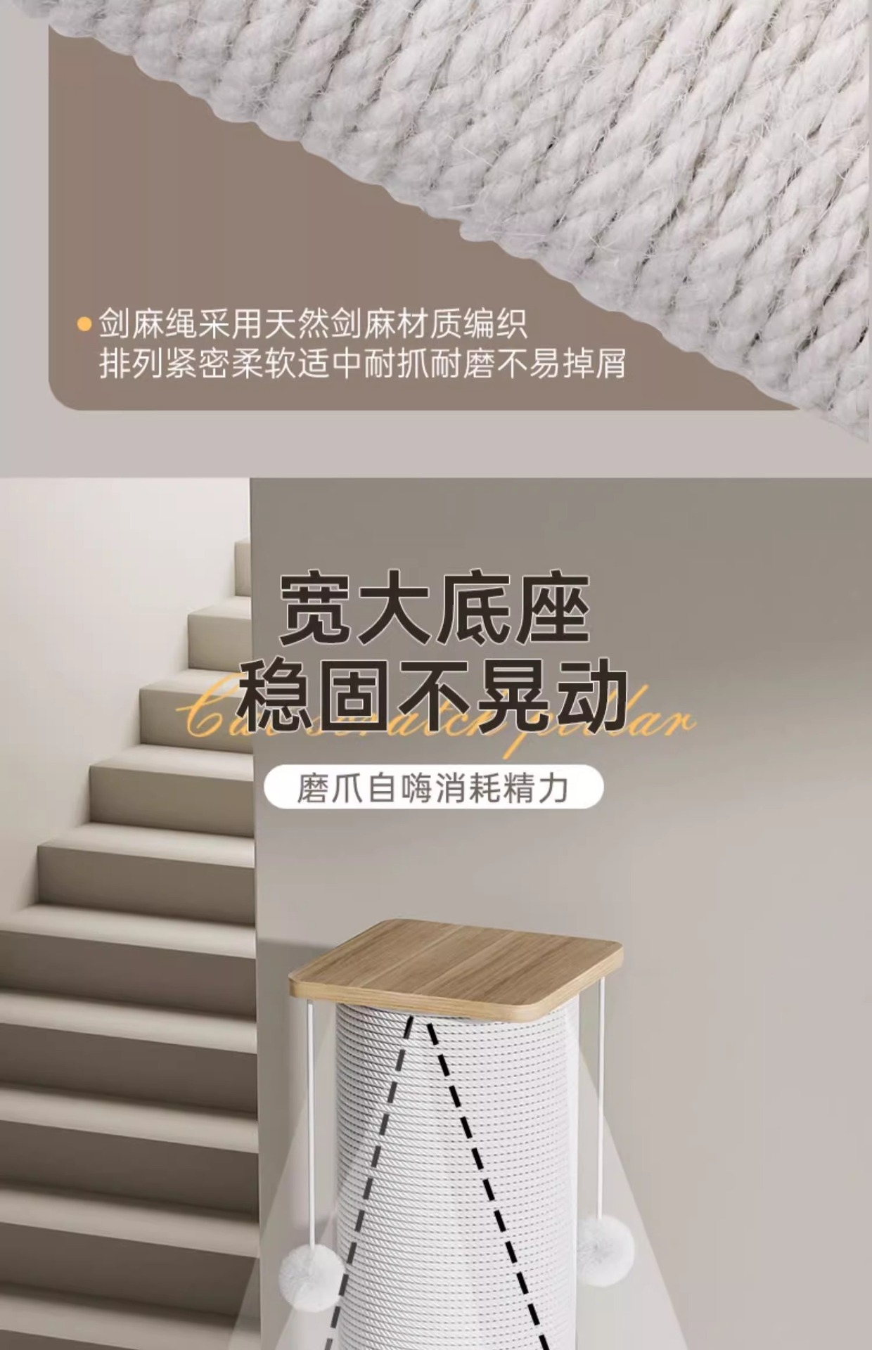 • 대형 황마줄 고양이 긁기 포스트(밀도판 80cm)