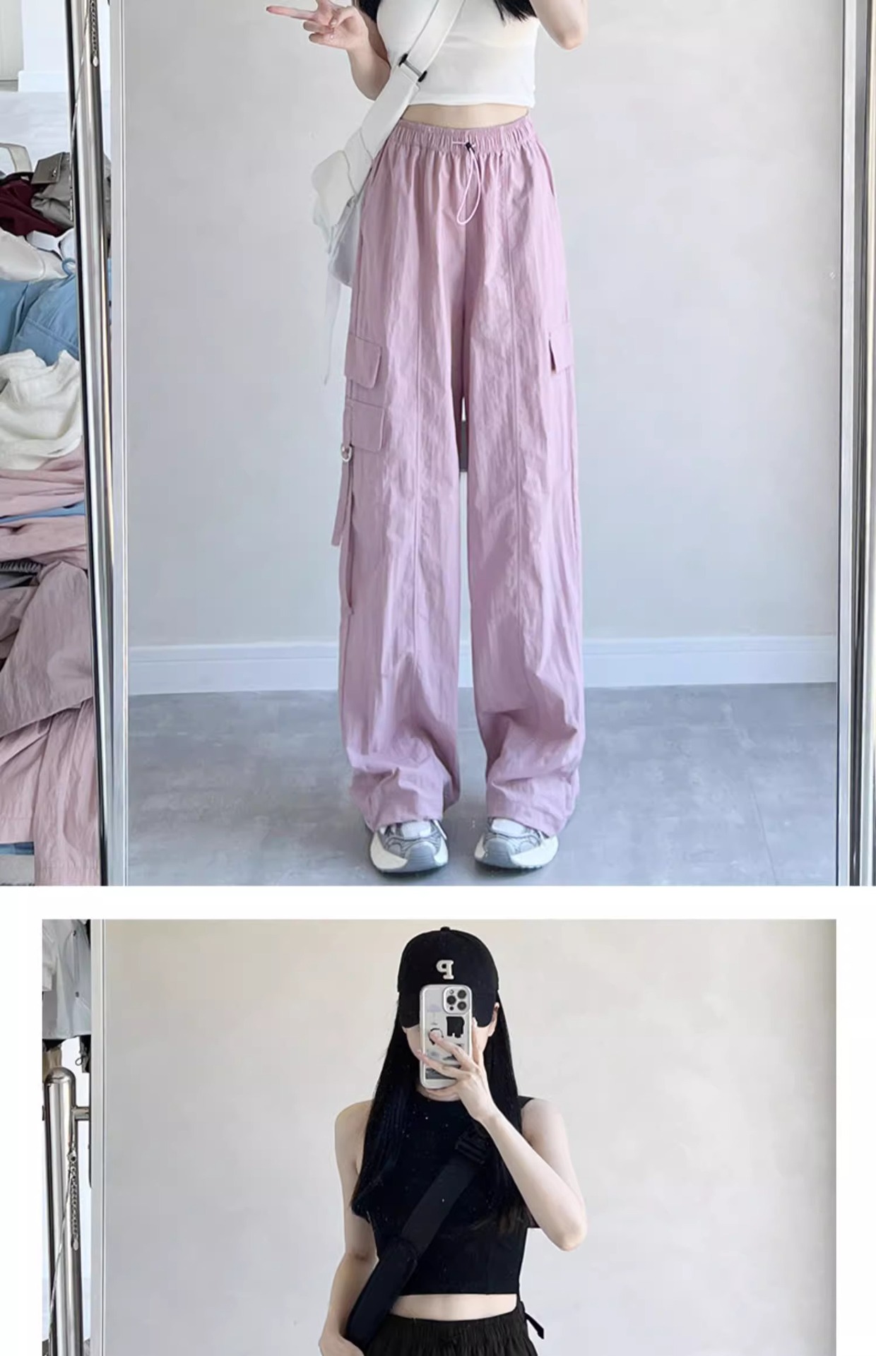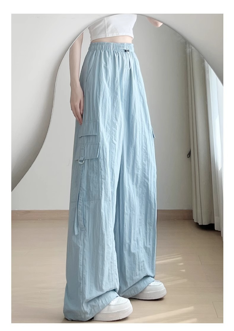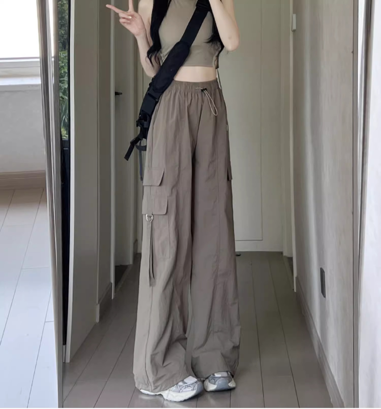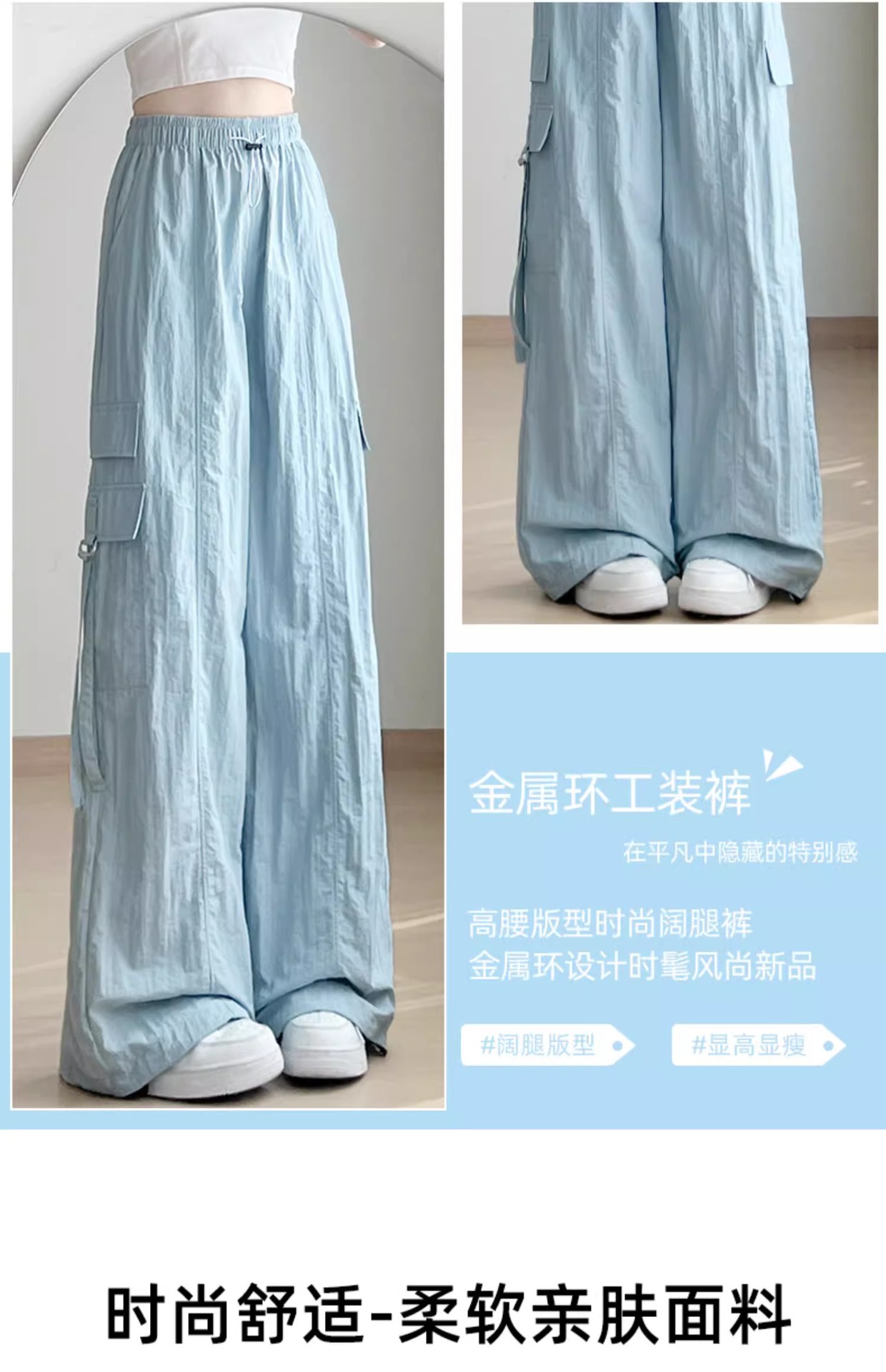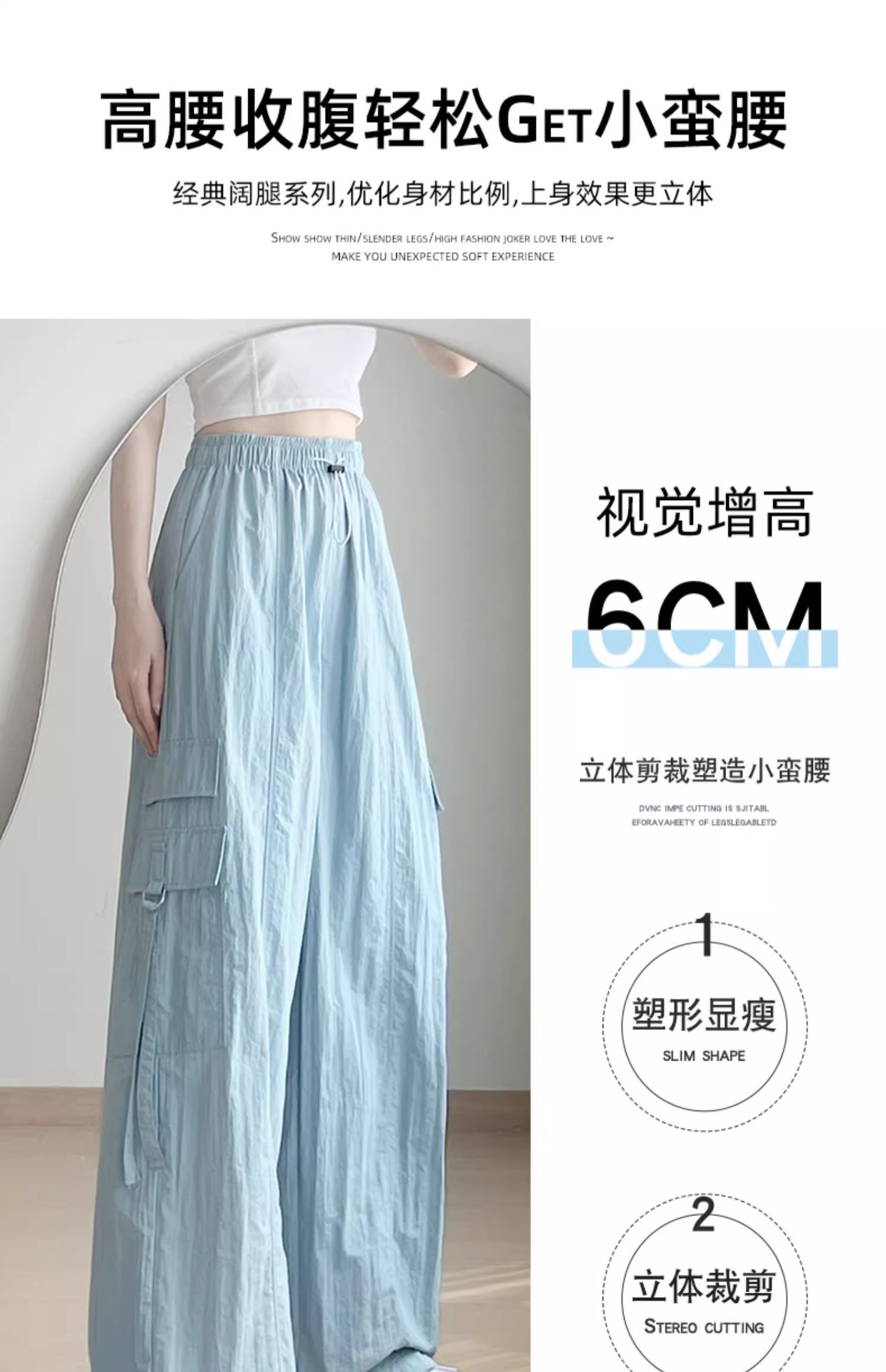 미국 복고풍 군중 바지 여성 여름 2025 새로운 높은 허리 느슨한 드레이 산 등반 빠른 건조 캐주얼 스트레이트 바지스토어 가기