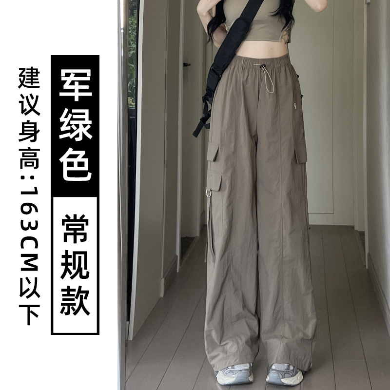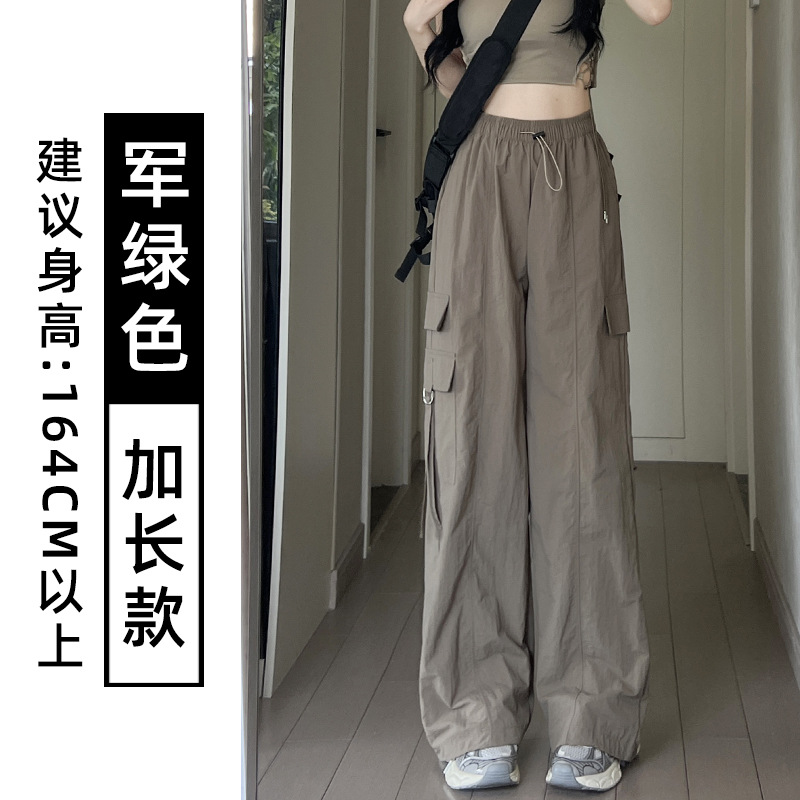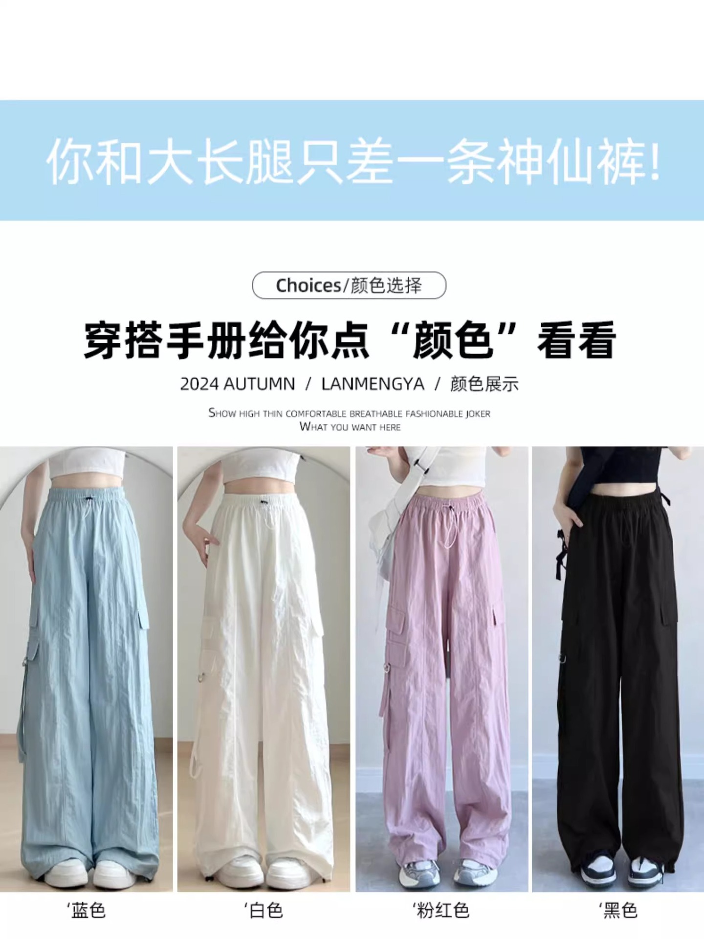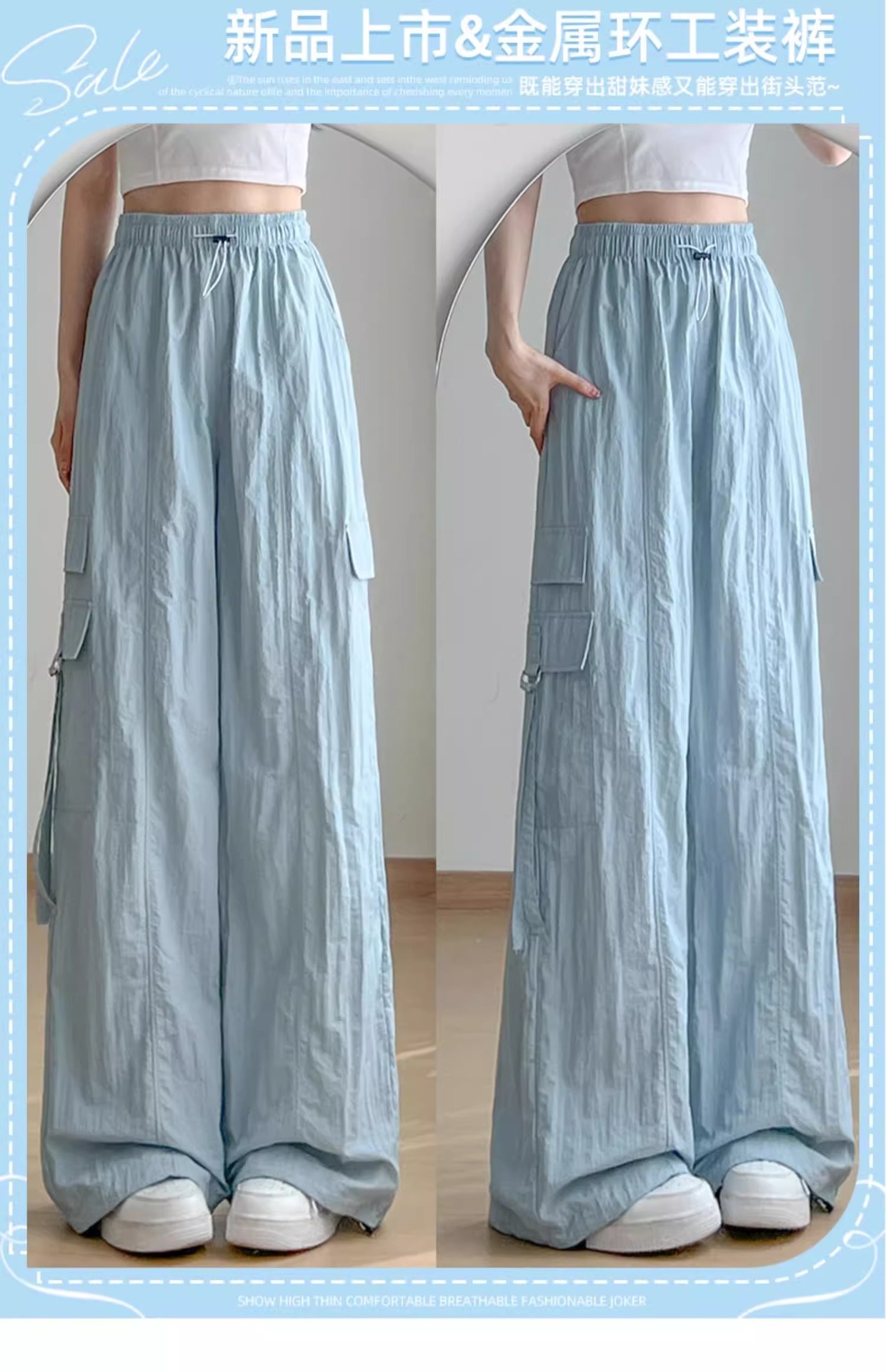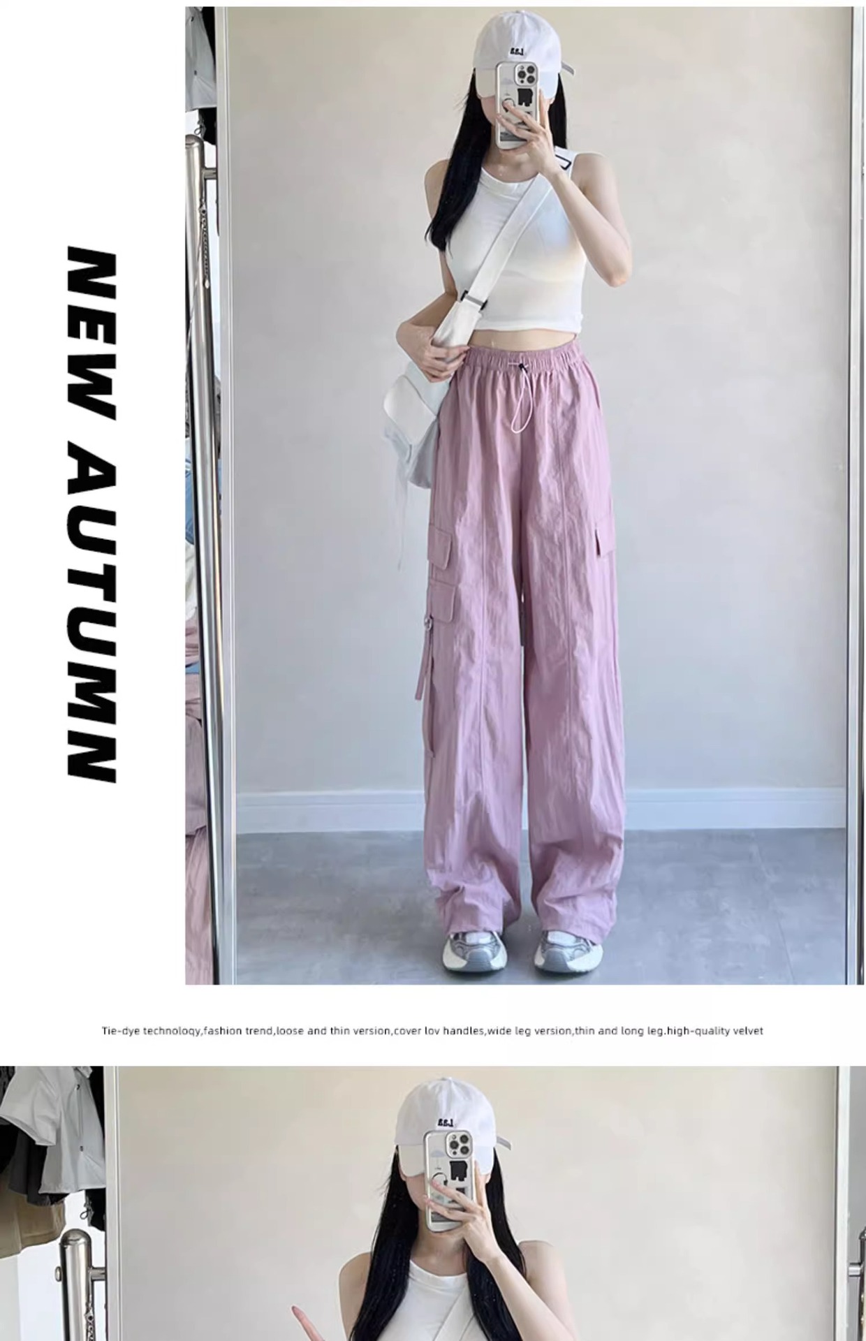 미국 복고풍 군중 바지 여성 여름 2025 새로운 높은 허리 느슨한 드레이 산 등반 빠른 건조 캐주얼 스트레이트 바지스토어 가기
